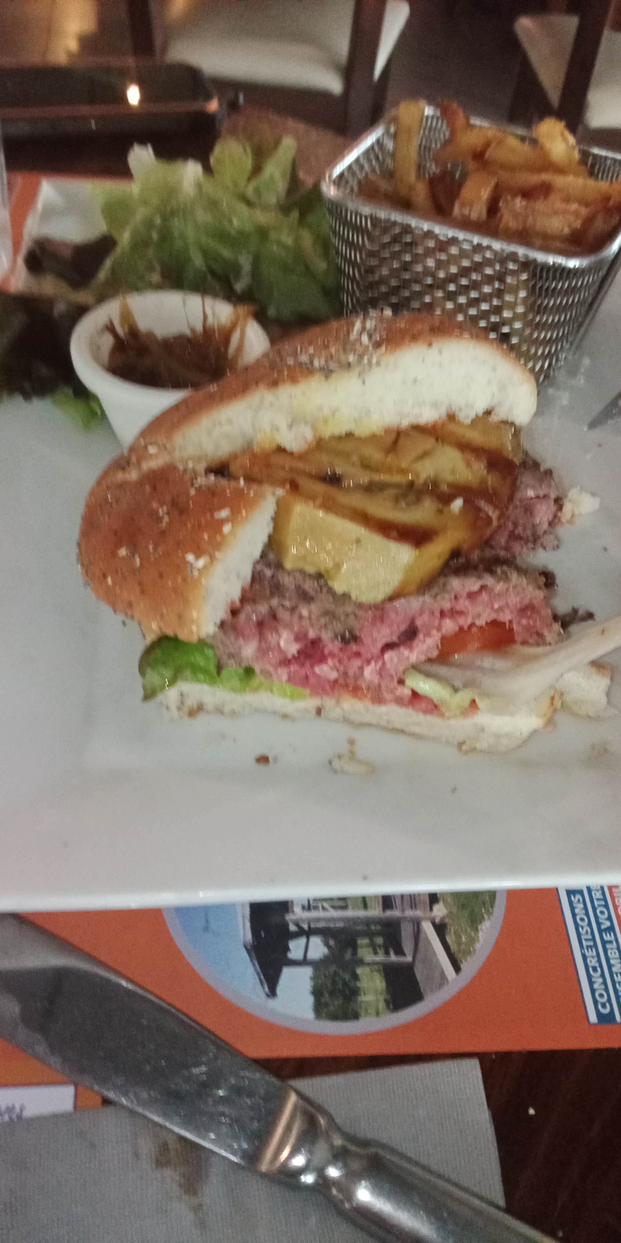 Déçue, pourtant ce n'est pas la première fois que l'on y vient. Viande très nerveuse, assiettes pauvres, juste une portion de frites, et un pot de sauce, je n'ai pas osé faire une photo.. l'apéritif a revoir.. les mojitos se font avec du sucre de canne et non du sucre en poudre qui ne fond pas... Très déçue... surtout pour mon anniversaire Je ne sais pas si on reviendra.