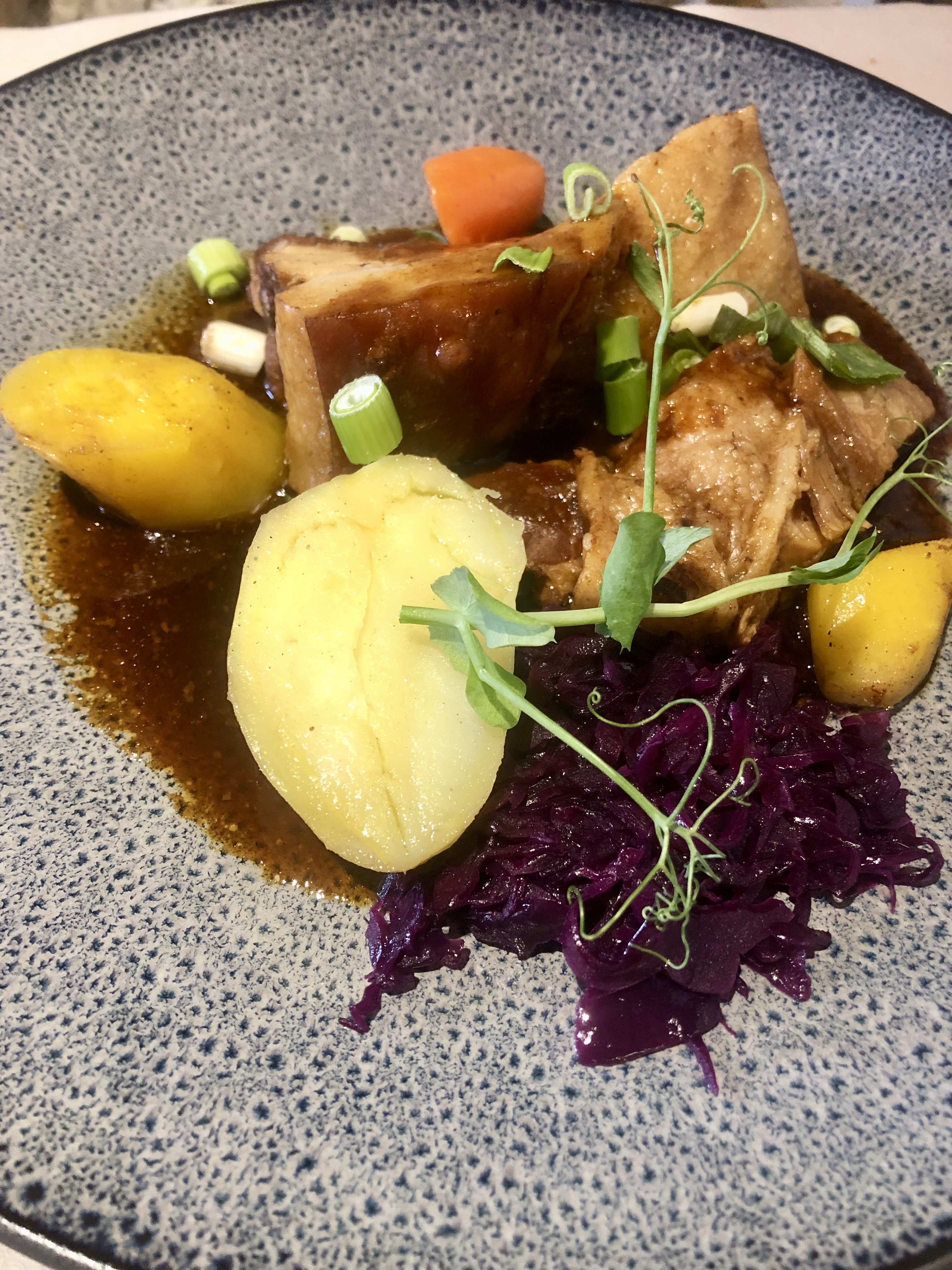 Un restaurant assez improbable dans ce petit village, où le chef cherche à faire plaisir, recherche et innove, tout en maintenant des plats traditionnels. J’ai gouté le roulé au gravlax qui était plutôt séduisant sur la carte, mais qui s’est malheureusement révélé être surchargé de petites pates chinoise, de trop modestes rectangles de gravlax et de saveurs et mâche manquant de contraste, de surprise. Le foie gras pris par une autre personne m’accompagnant, était un peu trop oxydé, ce qui signifie à la fois une couleur un peu plus sombre (qui tire sur le gris) sur la périphérie de la tranche et un goût trop fort et prononcé. C’est toujours le risque lorsque l’on propose ce met qui ne supporte pas le passage du temps. J’ai pour ma part pris une trilogie de poissons en plat principal, dont j’aurais apprécié une moindre cuisson. Elle était accompagnée de petits légumes bien réalisés et d’une sauce plutôt agréable et originale. Parmi les autres convives, il y a eu un excellent morceau d’Angus et une Pavlova extrêmement gourmande. La carte des vins est intéressante et bien fournie ; à des tarifs corrects. Compter minimum 40 euros par personne pour un menu complet avec vin. Le service y est efficace et correct ; sans plus. A tester néanmoins car le menu semble changer chaque semaine !