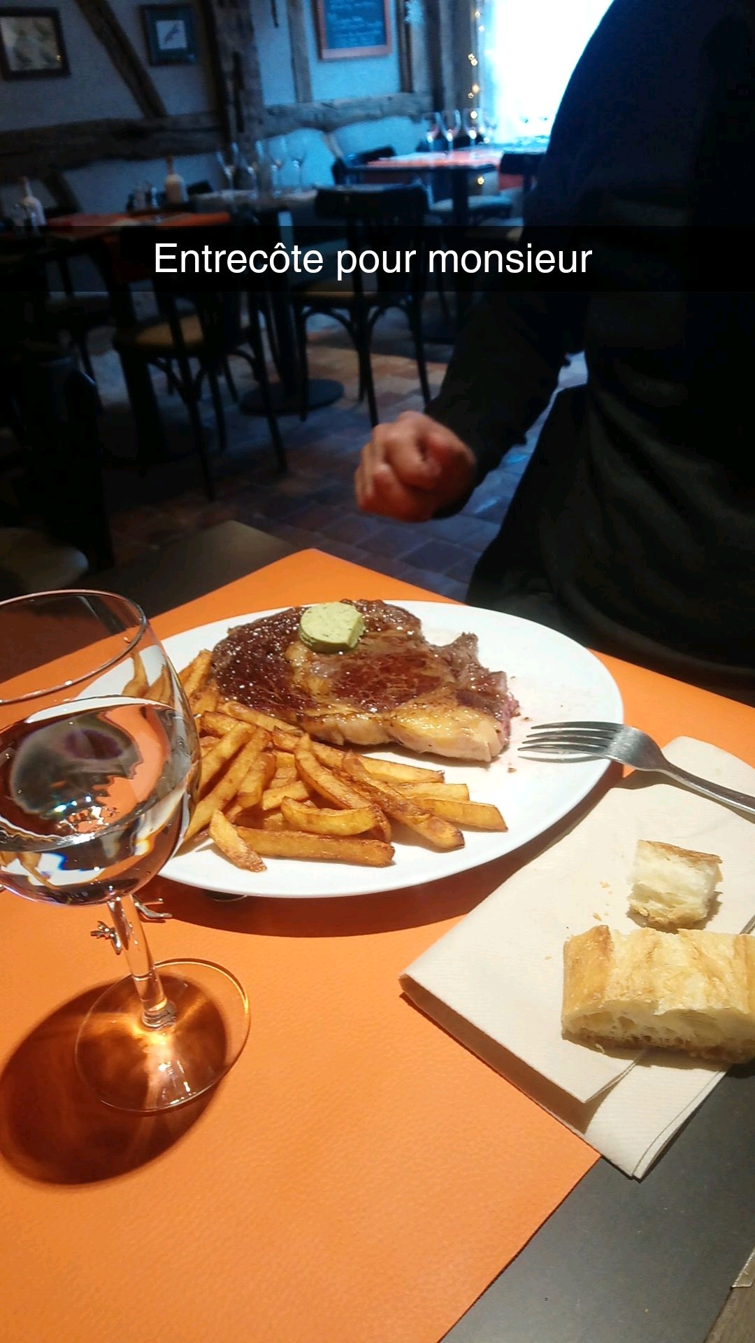 Un très bon restaurant chaleureux et cosy. La cuisine et le service sont irréprochables. Une serveuse très sympathique et souriante. Les plats sont servis rapidement et à la température et cuisson idéales. Menu du dîner: Œuf cocotte à l'italienne avec son parmesan. Magnifique Entrecôte charolaise à la sauce roquefort servie bleue d'une tendreté inouïe accompagnée de frites maison extra (obligé de demander un supplément tellement elles étaient exquises). Déclinaison de fromages de chèvre. Une excellente forêt noire portion et un café pour terminer. Je ne manquerai pas de revenir dans cet établissement où l'accueil est très appréciable. Merci pour ce délicieux moment passé dans ce restaurant