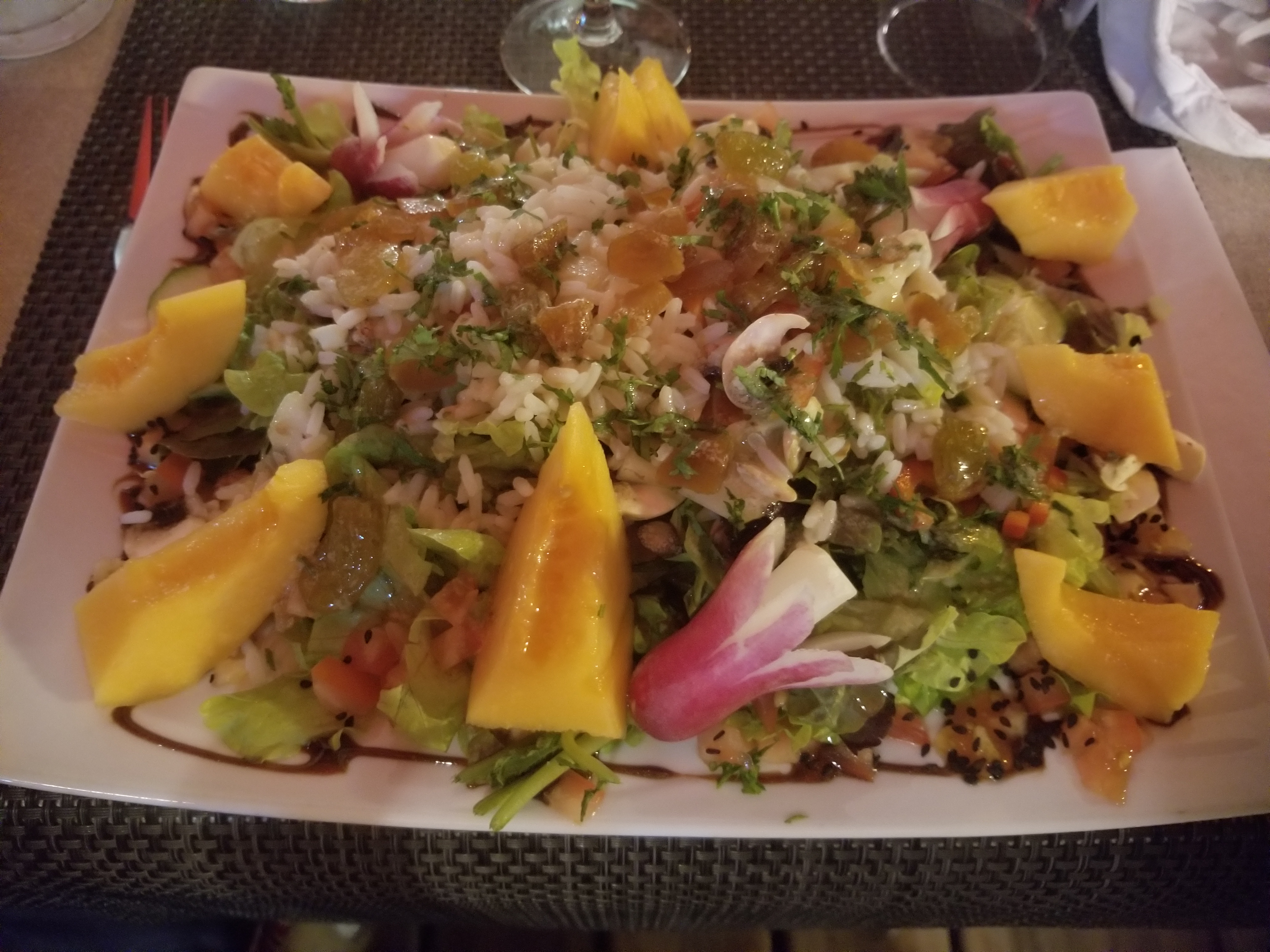 Menu à 30€ : entrée très copieuse = bcp de salade Plat = 1/2 pomme de terre , un dés an coudre de riz en accompagnement . Dessert = immangeable , en plus nous avions demander du chocolat , sur 3 personnes seulement 1 dessert au chocolat à été apporté alors que la vitrine était pleine de mousse chocolat ... pas sympa ! on finit le repas sur une note très moyenne ! Dommage .
