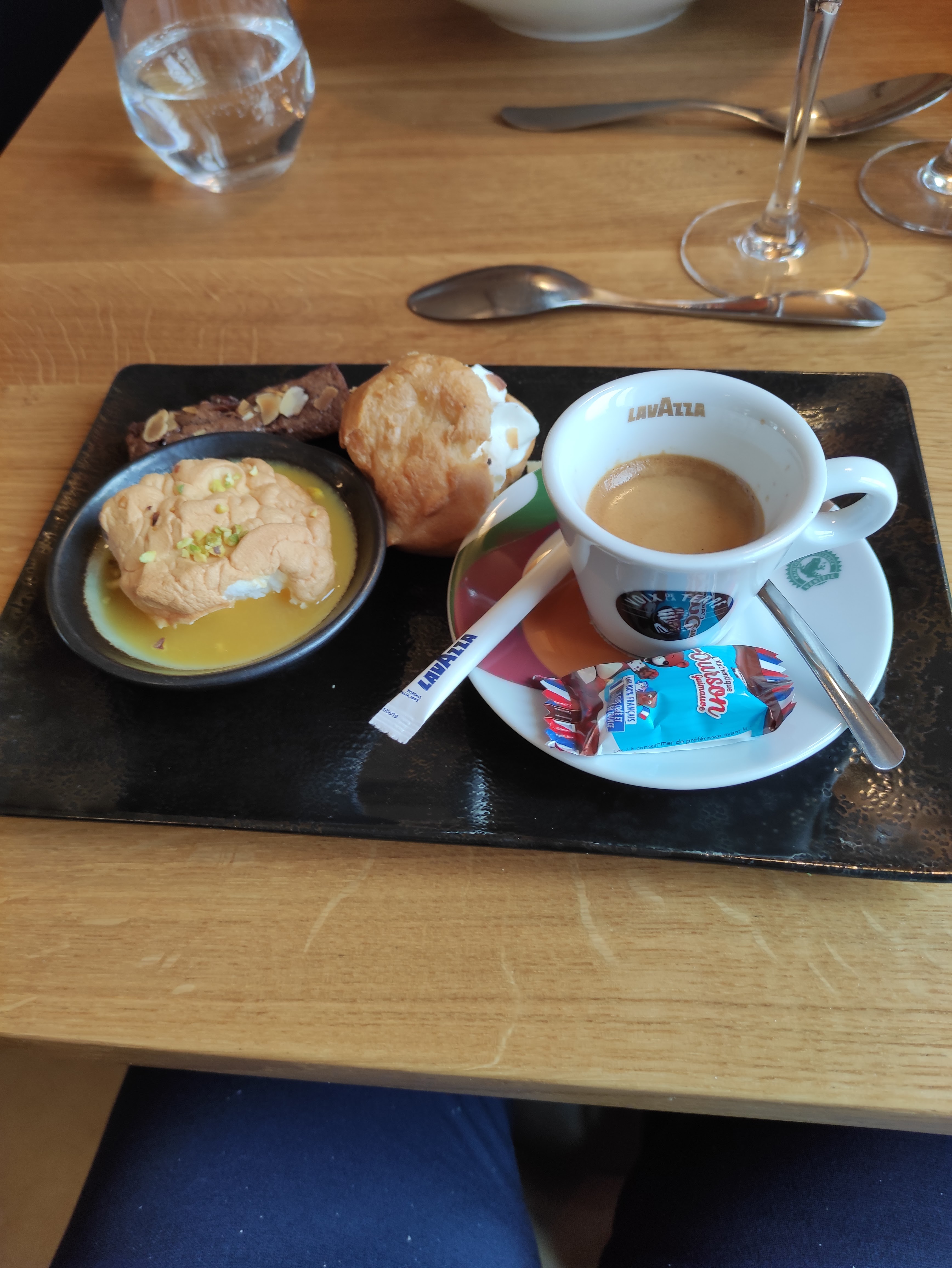 Jour de pâques. Nous sortons du restaurant. Acceuil chaleureux. Plats excellents ! et raffinés. En fait ça mérite la note de 5. A refaire sans hésitation.