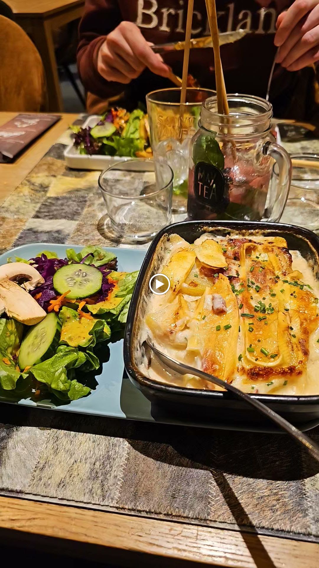 Soirée raclette au top ! Nous avons opté pour la raclette au Brezun fromage affiné fumé délicieux ! Appareil traditionnel à racler très sympa ! Seul bémol : Un peu plus de charcuterie aurait été apprécié ainsi que des cornichons ! Accompagne d’un bon mojito très bien présenté ! Je recommande ! 👌🏼👍