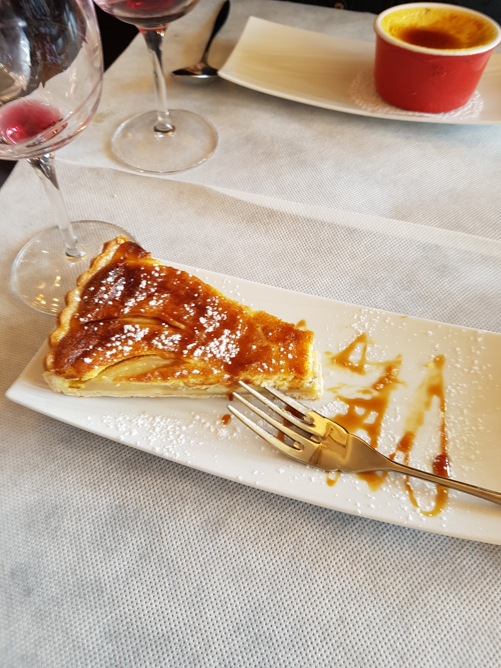 Service et ambiance très sympa cuisine moyenne dessert tarte pruneaux super
