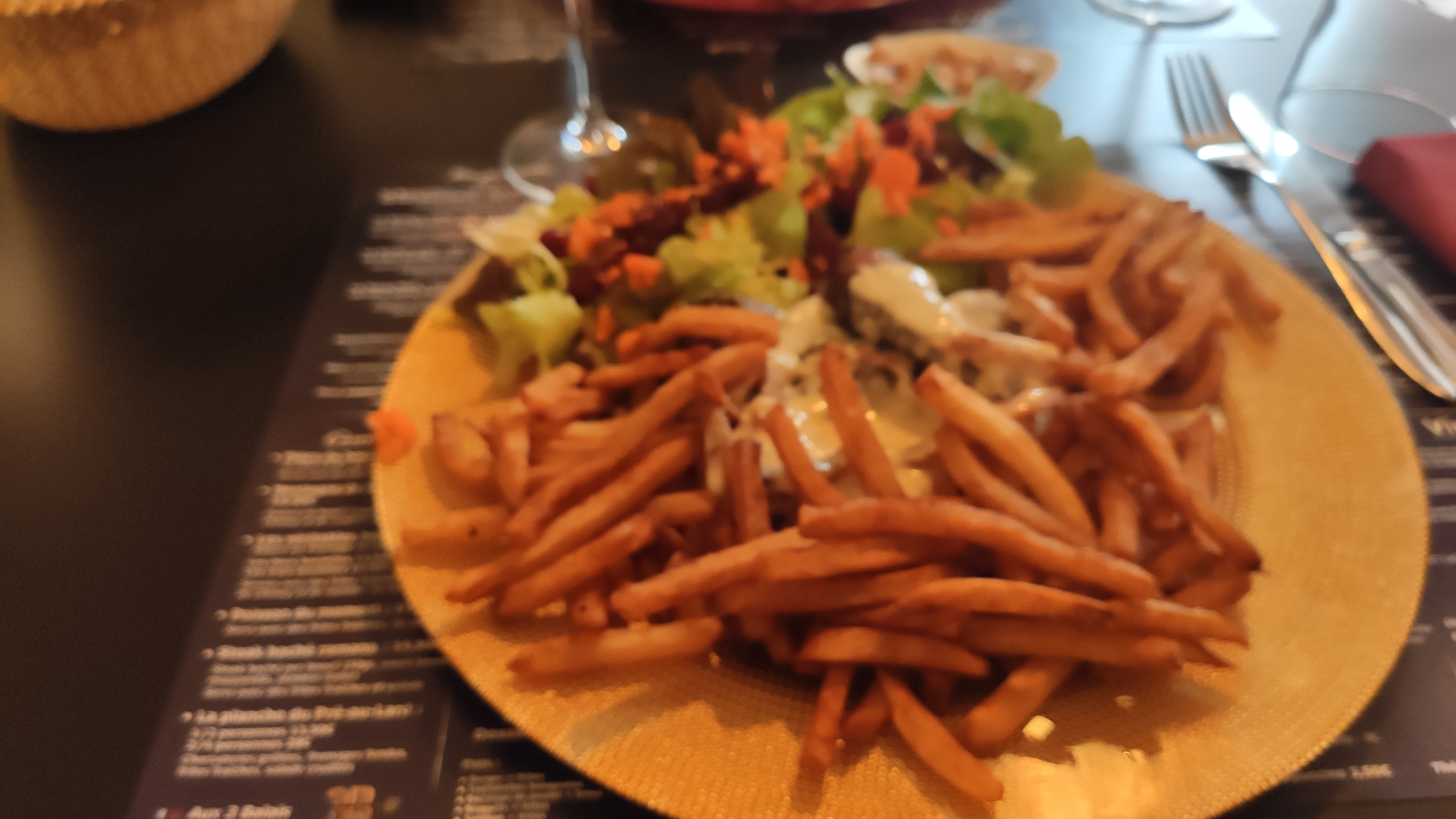 Parfait du début jusqu'à la fin ! Les frites étaient délicieuses, toit comme la sauce et la viande. Le cadre est magnifique, de plus le patron est très sympa, on sent la passion quand il parle de ses plats. Je recommande sans hésitation !