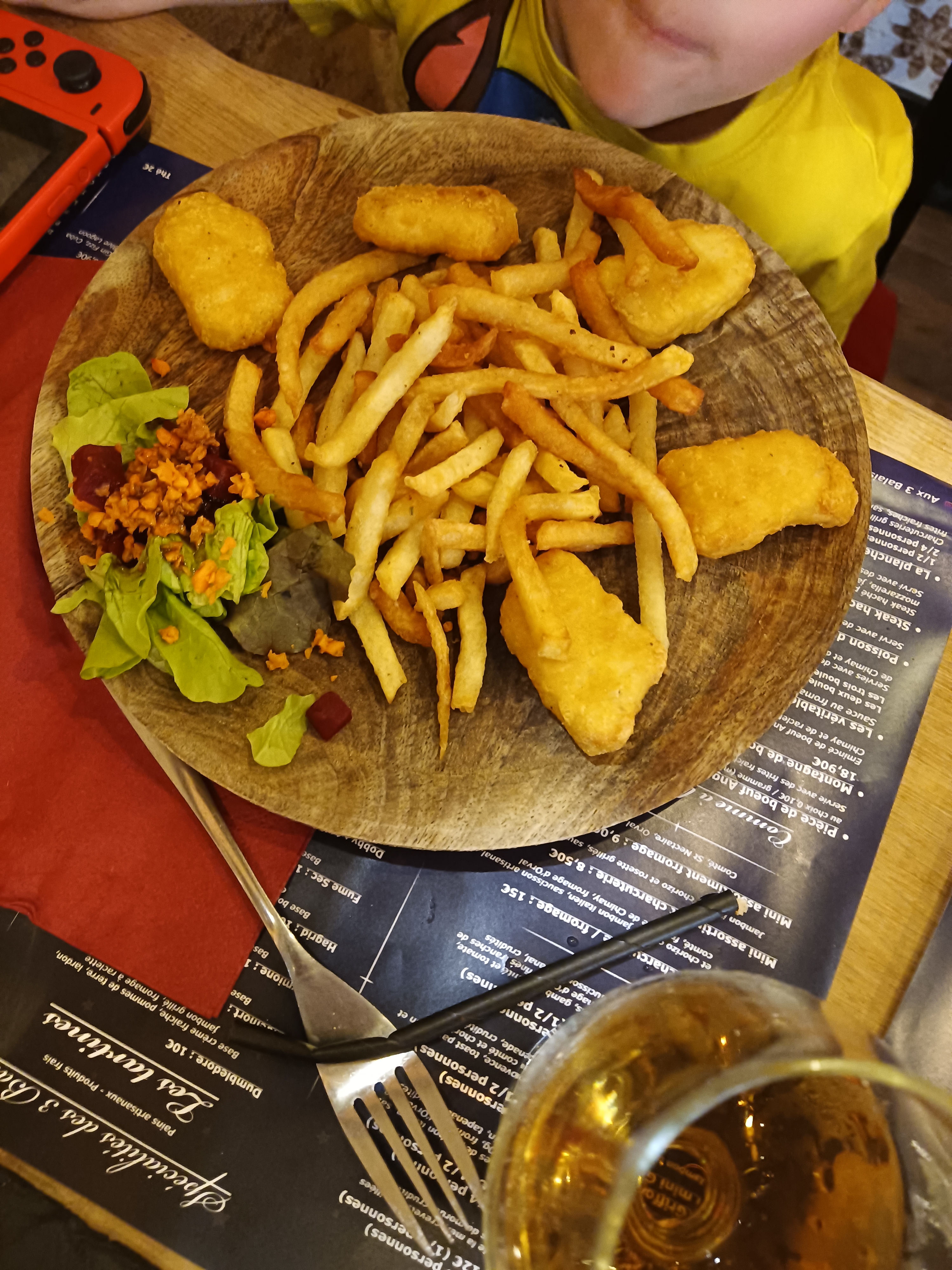 Nous avons passé un super repas en famille ce midi. Nous avons été très bien accueilli par le serveur et le gérant du restaurant qui ont été aux petits soins pour nous et notre fille. Nous avons pris chacun 1 menu a 27€ et avons été rasasiés et comblés de nos plats. Notre fille de 2 ans semble avoir apprecié les nuggets et les frites.