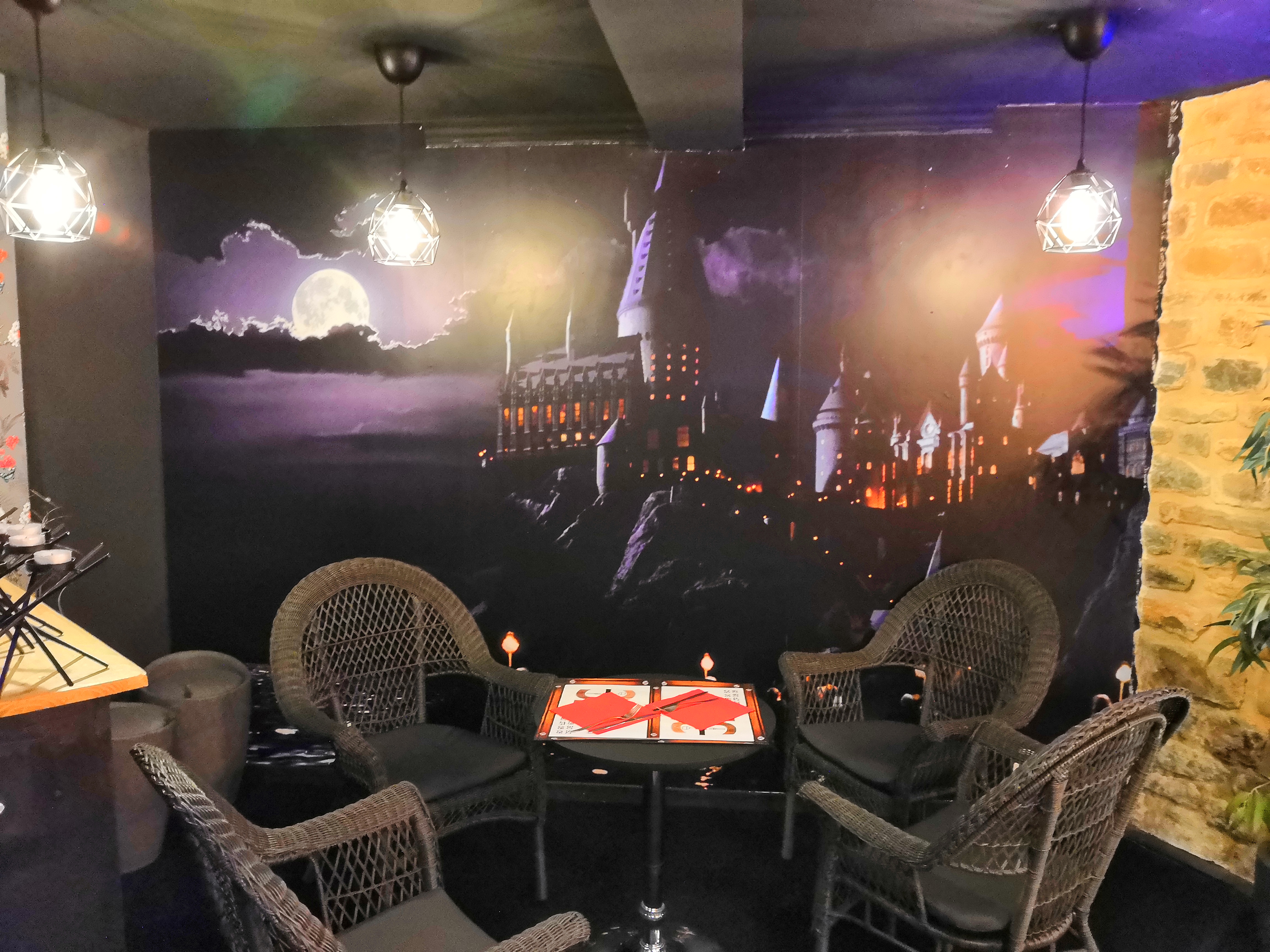 Super déco. Chouette ambiance orientée Harry Potter. Les plats sont joliment présentés et plutôt rapidement servis. Les serveurs sont à l'écoute des demandes. Les desserts sont copieux et délicieux. J'aurais juste une chose à dire : certains prix me semblent un peu élevés par rapport à la quantité fournie dans l'assiette. Je recommande de manière globale.