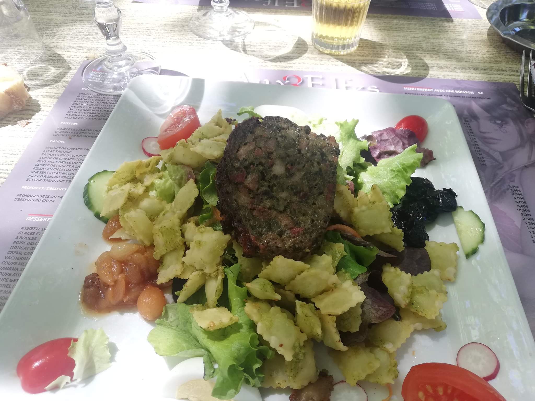 La terrasse est jolie. Le service était long et peu aimable mais nous étions nombreux un dimanche soir, c'est peut-être pour ça. Je me suis cru dans cauchemar en cuisine. La qualité et la présentation sont très différentes d'un plat à l'autre. Mais certains plats sont vraiment ragoutants (ravioles du Dauphiné à la forestière). Mais globalement ce n'est pas bon et c'est cher pour ce que c'est. Et non tout n'est pas fait maison, comme dit dans certaines réponses, même pas la vinaigrette de la salade. Un des pires restaurants où je suis allée.