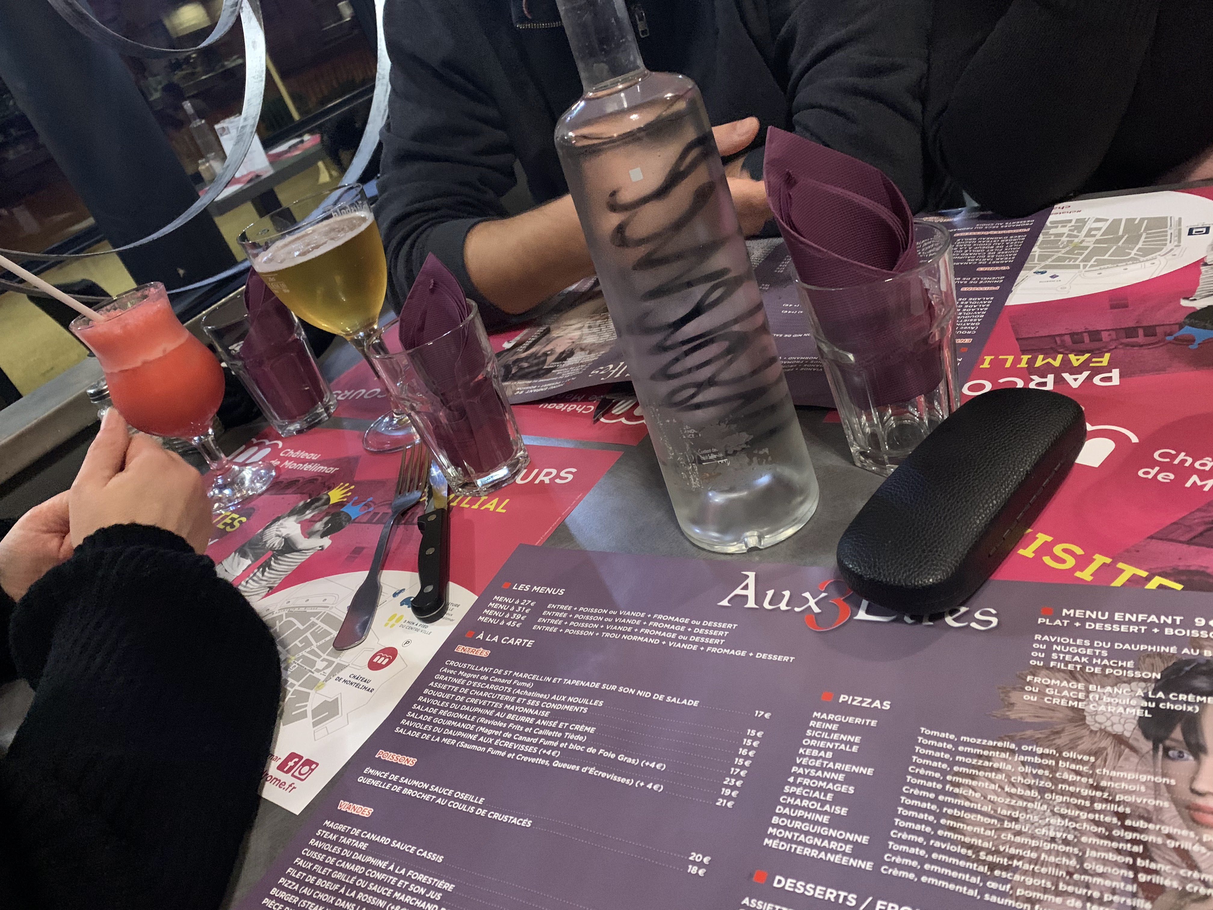 En vacances sur Montélimar,nous avons dîné a 4 aux 3 Elfes.Sur 4 ,deux pizzas commandées.elles étaient infâmes.surement surgelées,sauce tomate acide,avec en guise de fromage,une petite poignée de gruyère râpé.j'ai commandé un burger frite,il était bon.par contre,il y avait dans l'assiette une cuillère d'épinard a la crème qui faisait peur a gouter.Suite a notre remarque ,aucun geste de leurs parts.marchez un peu et vous aurez des restos bien meilleurs et plus sympathique. On aurait du regarder les avis avant de s' atabler.