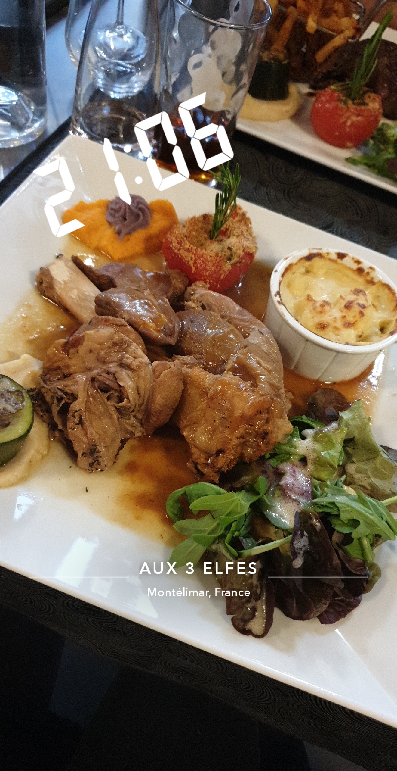 Fraîchement arrivé dans Montélimar centre à vélo, nous avons été refusés à plusieurs reprises par des restaurants complets (il était 13h20)... Heureusement les 3 elfes ont accepté notre visite. Une serveuse agréable, un menu du jour complet à 16€ et un service rapide sont tous les ingrédients nécessaires à la réussite d'un repas bien mérité. Des plus le poisson était frais, ferme et délicieux. Je recommande vivement cet établissement.