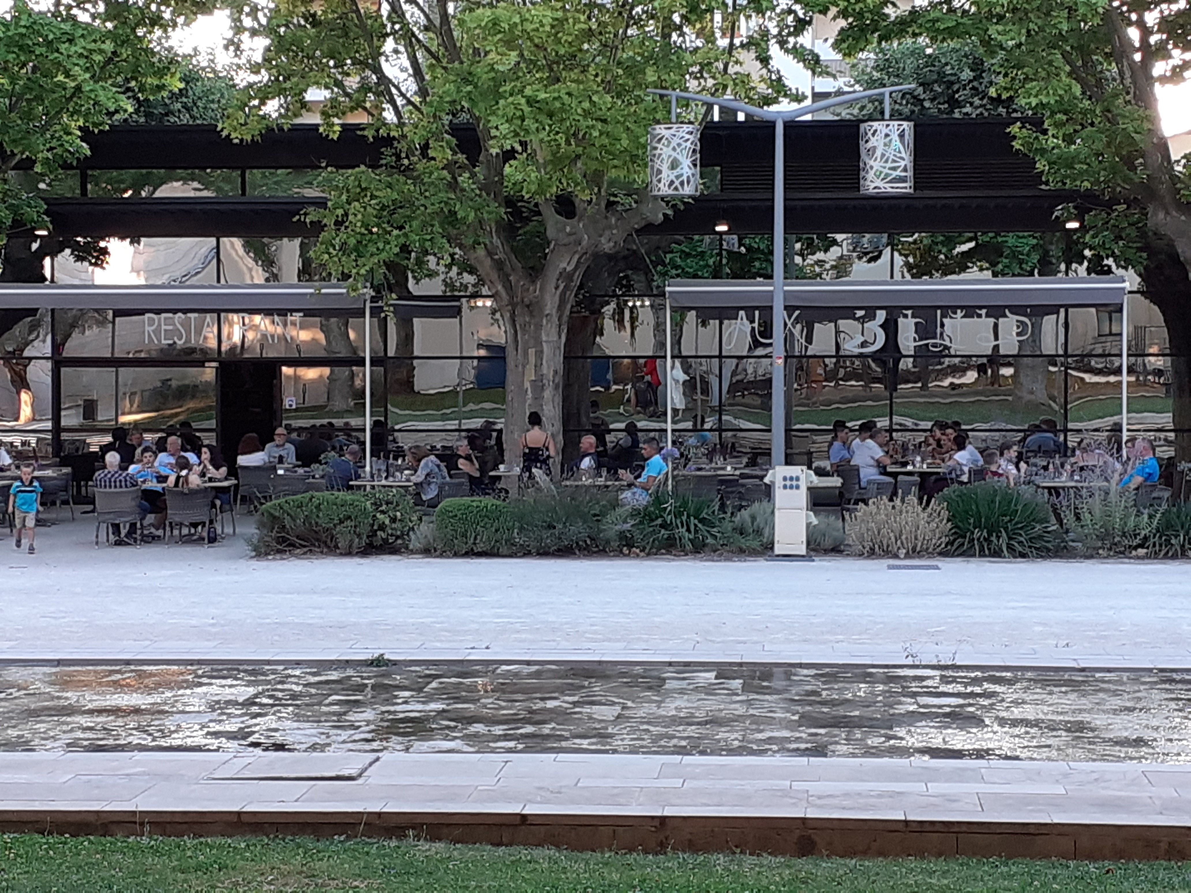 Endroit reposant sous les platanes et une terrasse agréable