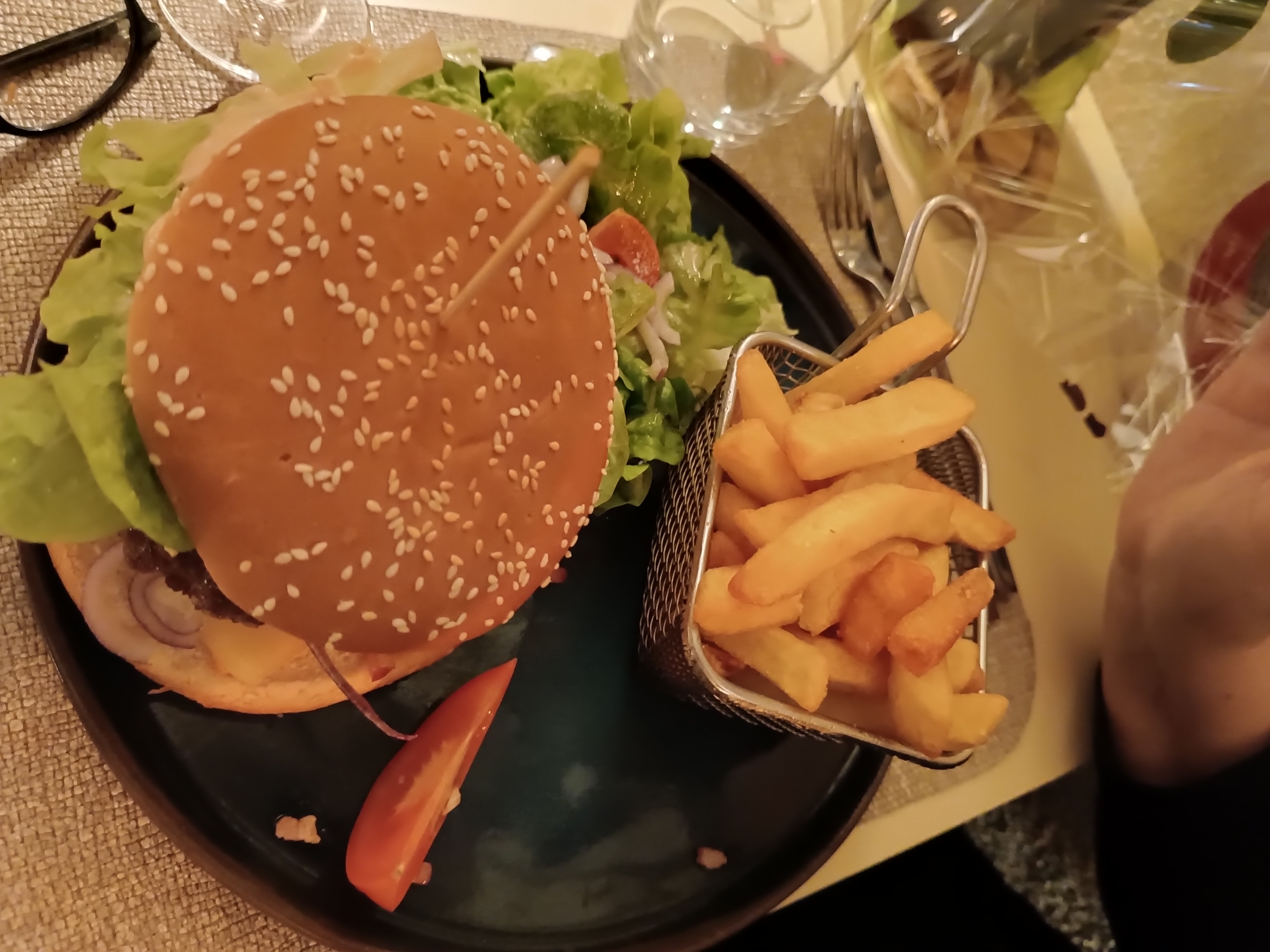 Accueil très chaleureux, burger du chef très bon, et part de tarte généreuse, je recommande vivement