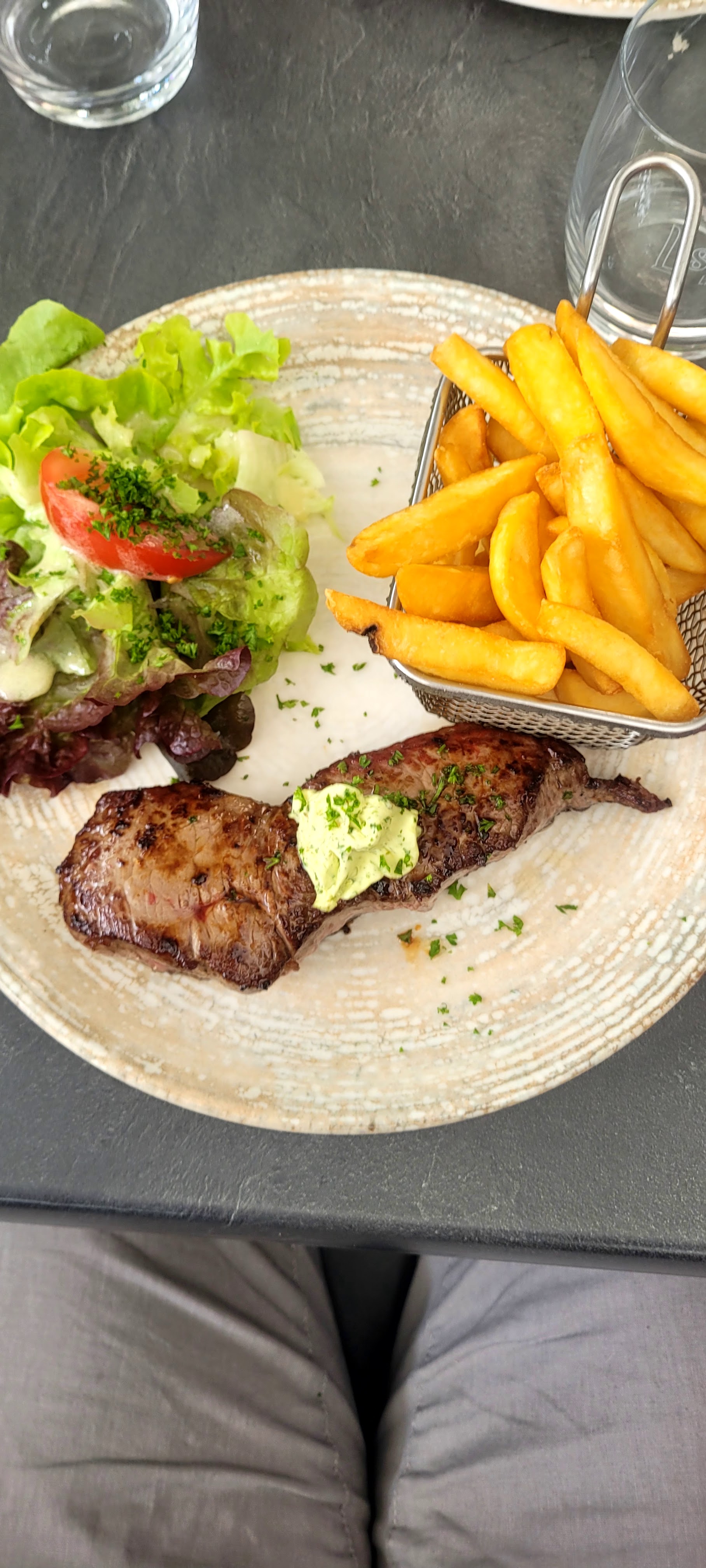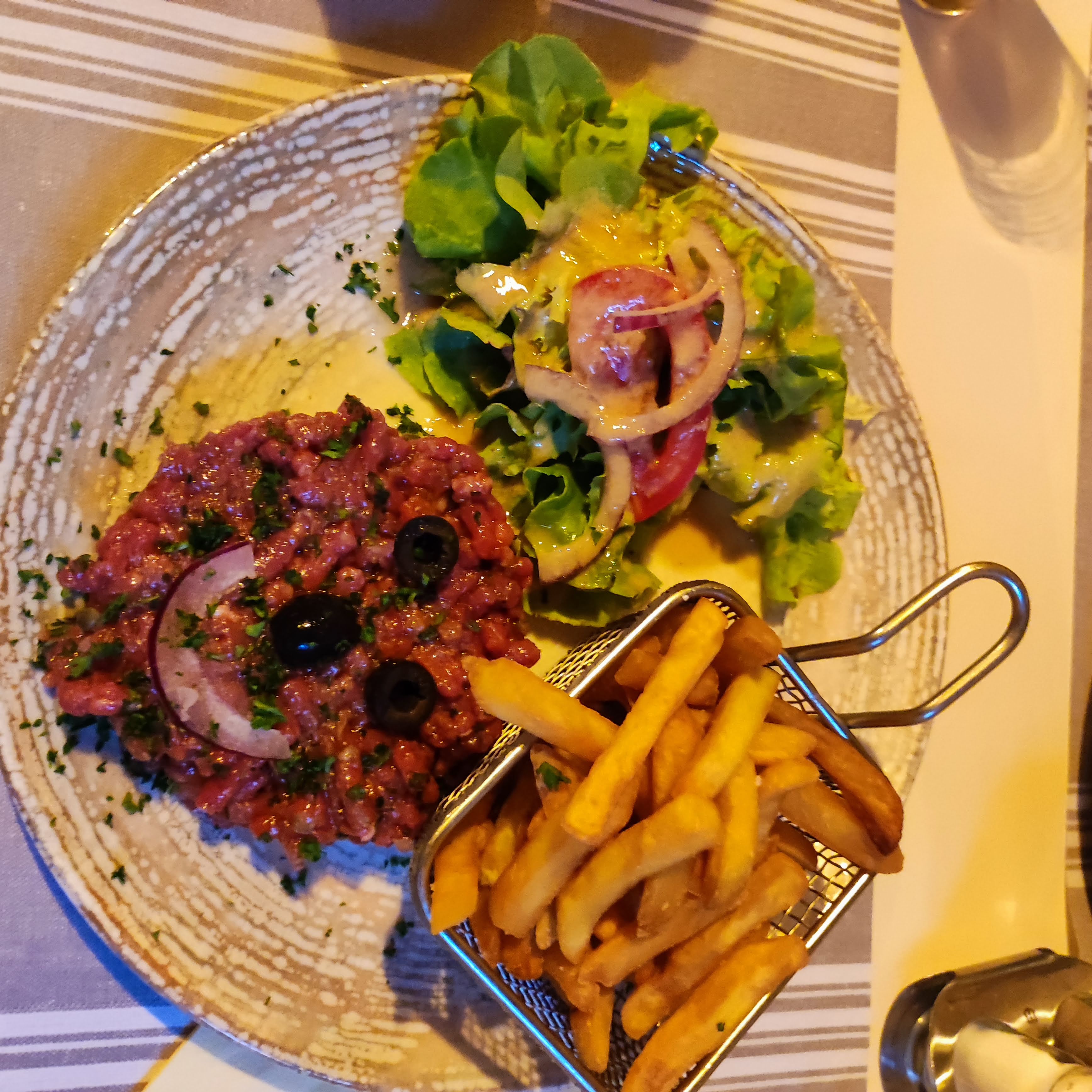 Un peu deçu car carte plus a jour entre internet et a table. Pour information, il n'y a plus de tarte flambée. Salade copieuse, frite fait maison.