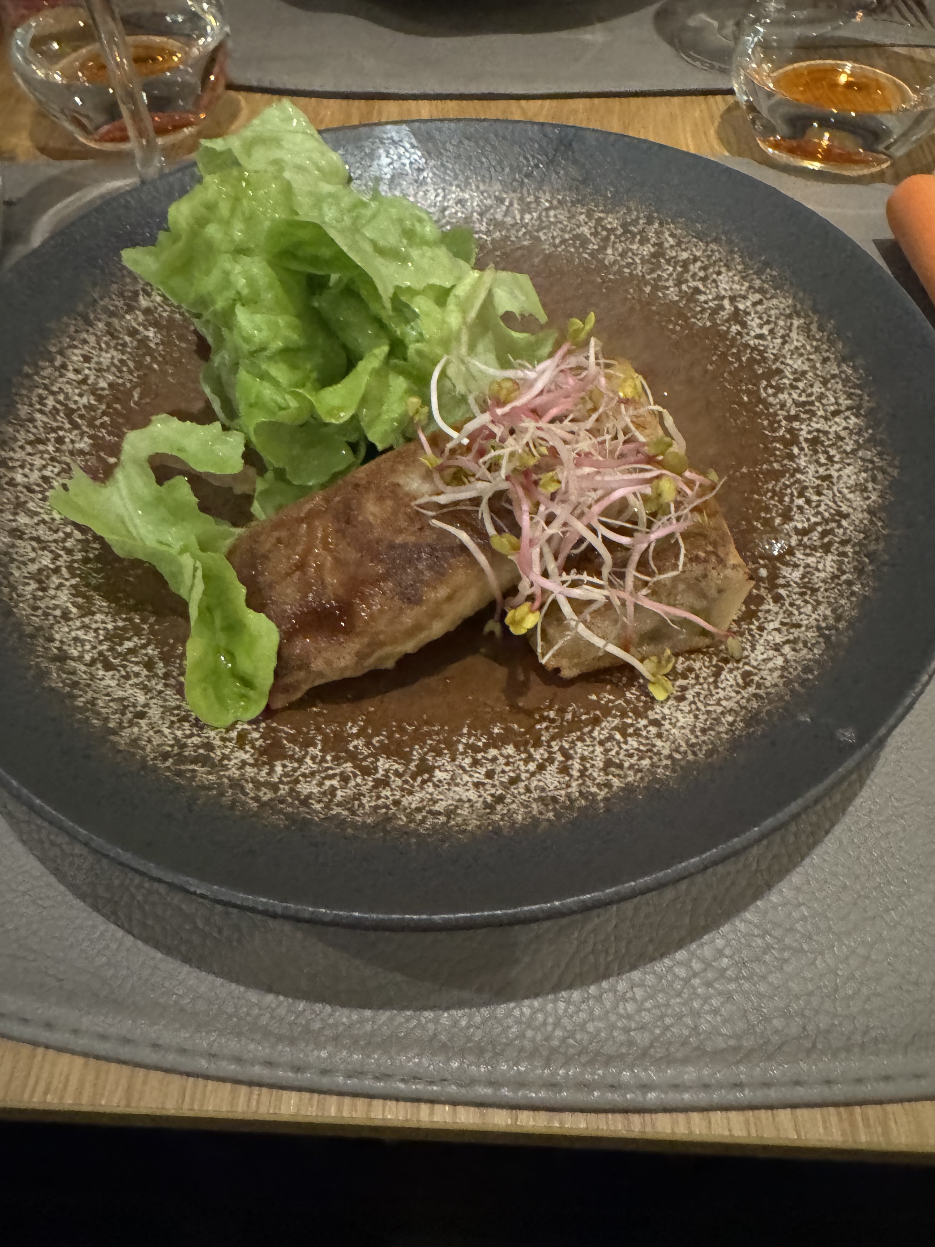 Ce soir dégustation de croustillant canard, pièce de bœuf sauce échalotes légumes et pdt, et enfin dômes chocolat blanc et poire … EXCELLENT!!!!! Le tarif est plus qu’abordable. L’ambiance est cosy et chaleureuse. Les détails font la différence. Et le serveur est super. Parfait continuez comme ça et à bientôt.