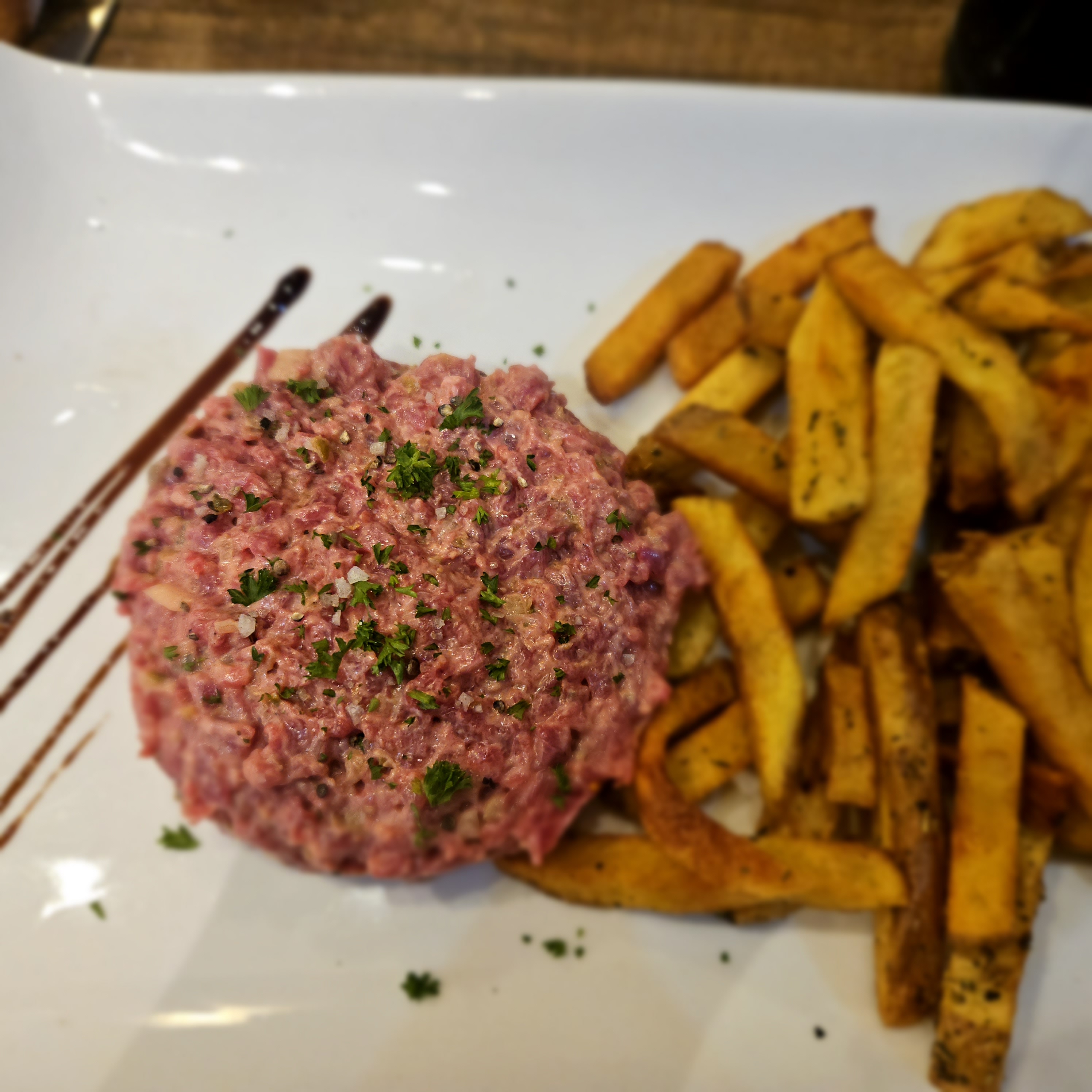 Je suis venue mangé toute seule et ai été très bien recut à 13h30. Le foie gras est maison c'est un délice.. Le tartare de bœuf lui est couper au couteau et avec des vrai frite maison. Hmmmm un délice aussi.. La jattend m'a crème brûlé maison mais je voulais être sûr de m'être un commentaire avec 5 étoile avant de partir et d'oublier de le faire. Je recommande à 2000000 pour cent. Prix très abordable