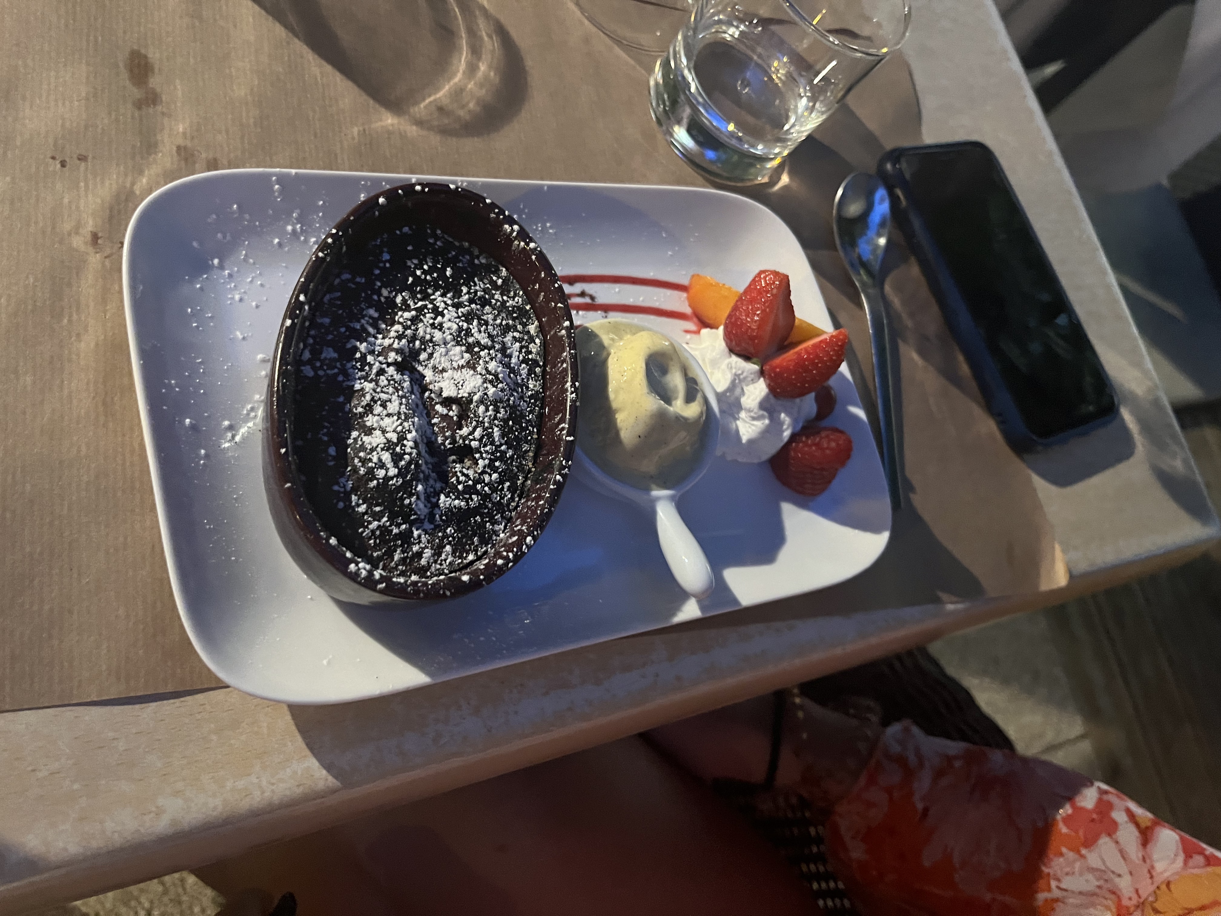 Pizza délicieuse et généreuse, fondant au chocolat maison comme rarement j'en ai mangé. Excellent rapport qualité prix.