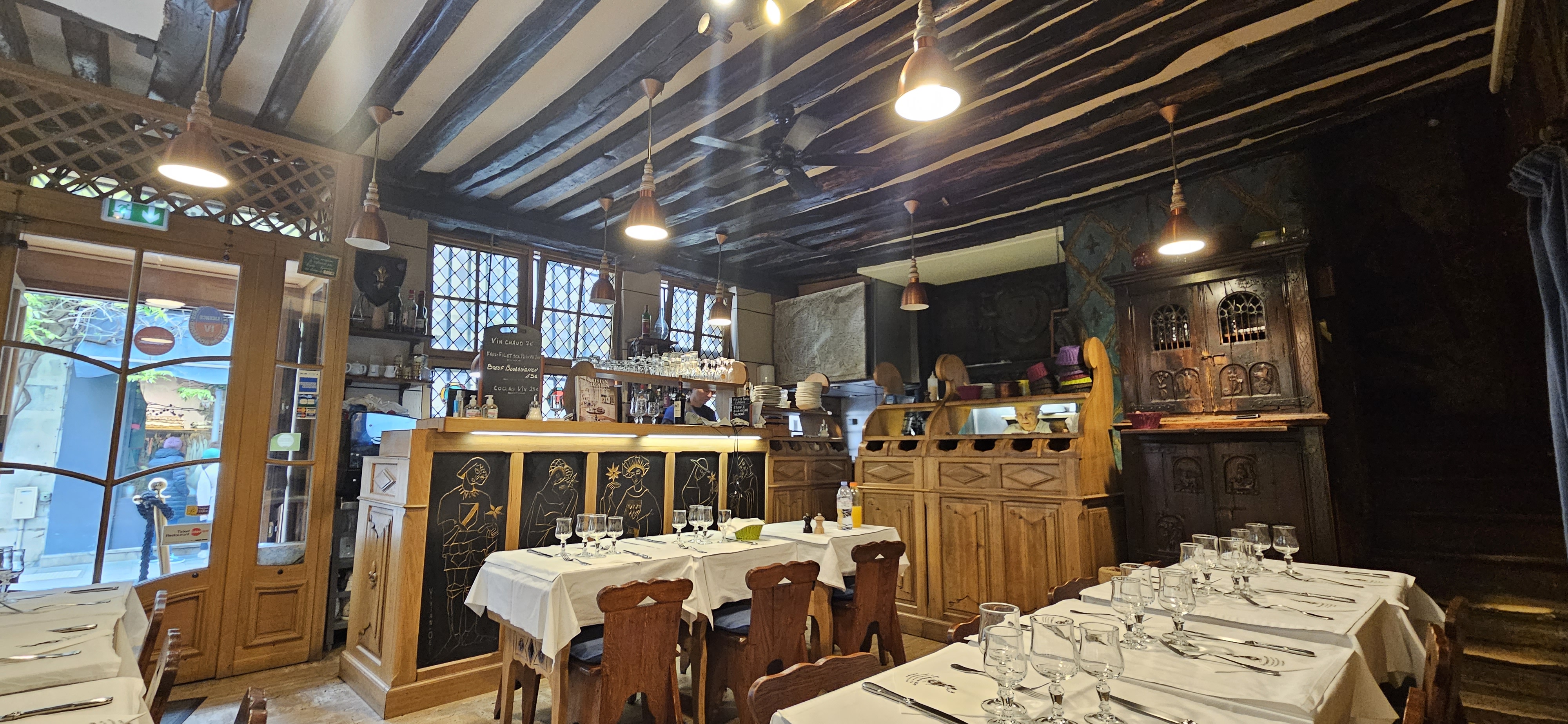 Incroyable ambiance, typiquement médiévale/taverne très sympathique (nous avons même assisté à un adoubement en direct sur une table voisine). Le lapin à la moutarde en plus d’être excellent m’a été coupé par la gérante à la fin car je n’avais jamais mangé de lapin. N’hésitent pas à rapporter du pain 4 fois avec le sourire, à servir à un ami de la sauce du lapin dans un ramequin alors qu’il n’avait pas commandé ce plat ! Je recommande vraiment les yeux fermés.