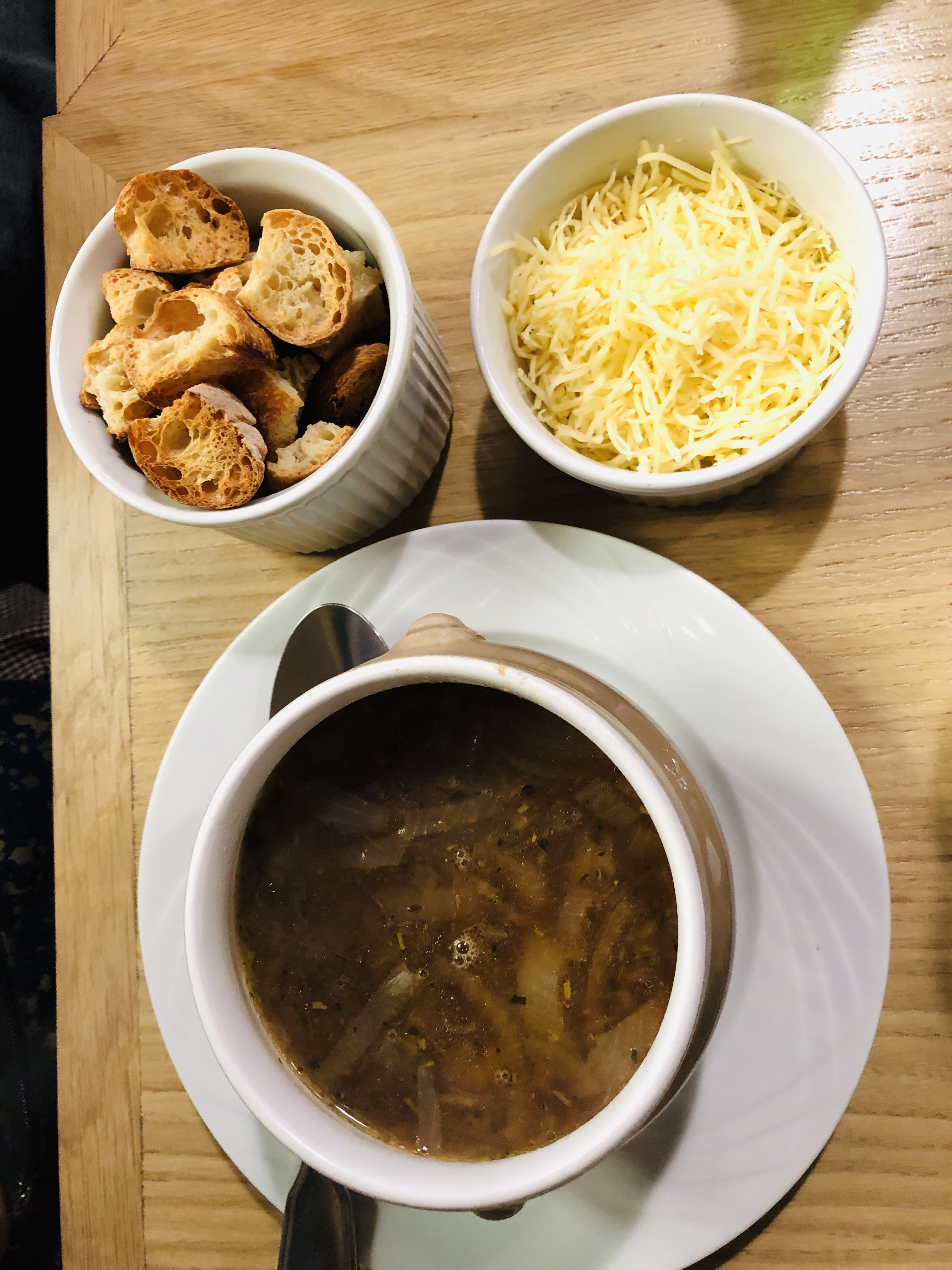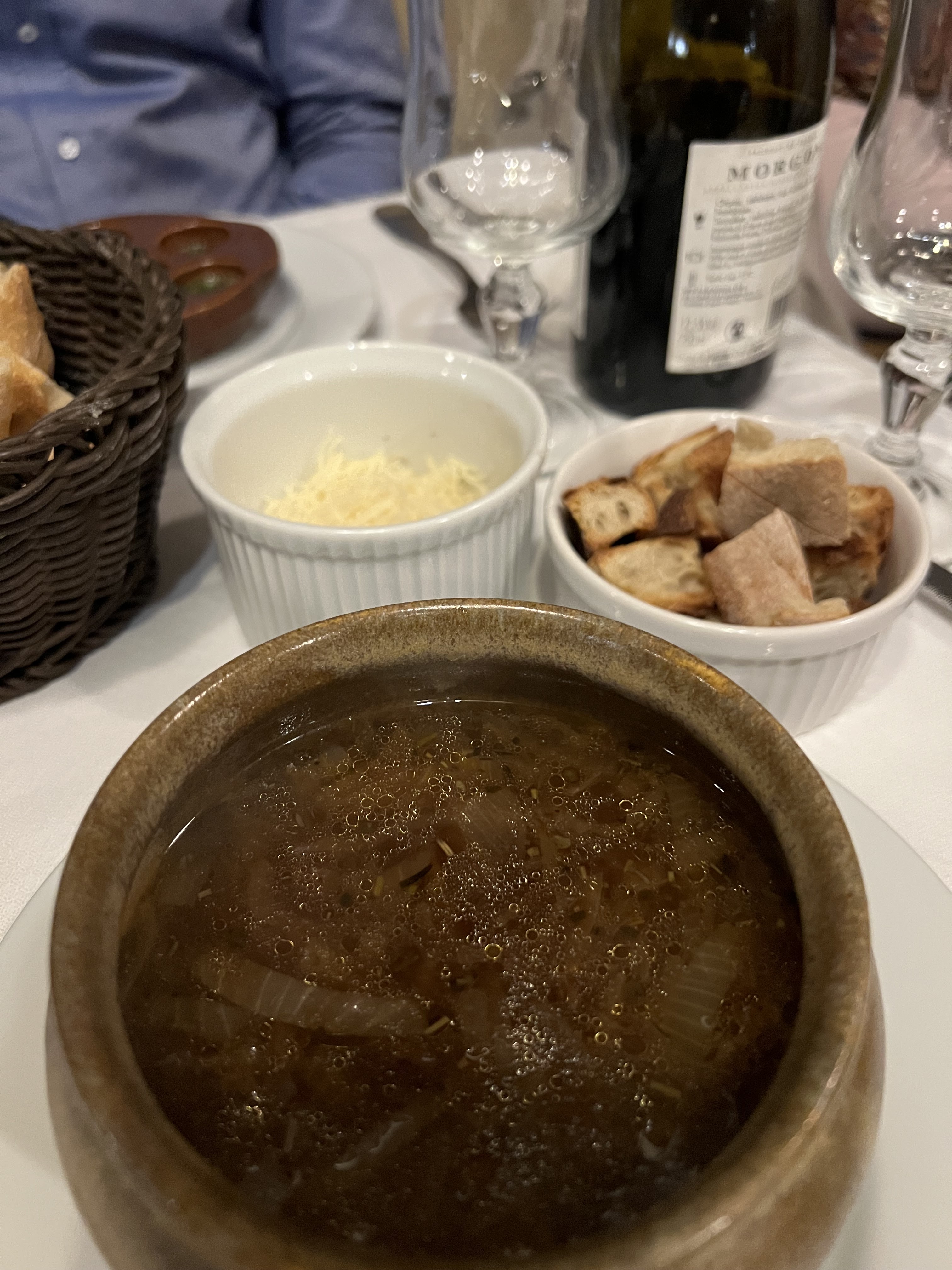 Belle soupe à l'oignon, terrasse, filet de bœuf et aussi le cassoulet et la crème brûlée... tout était merveilleux. Quand je reviendrai à Paris, je suis sûr que je reviendrai ici.