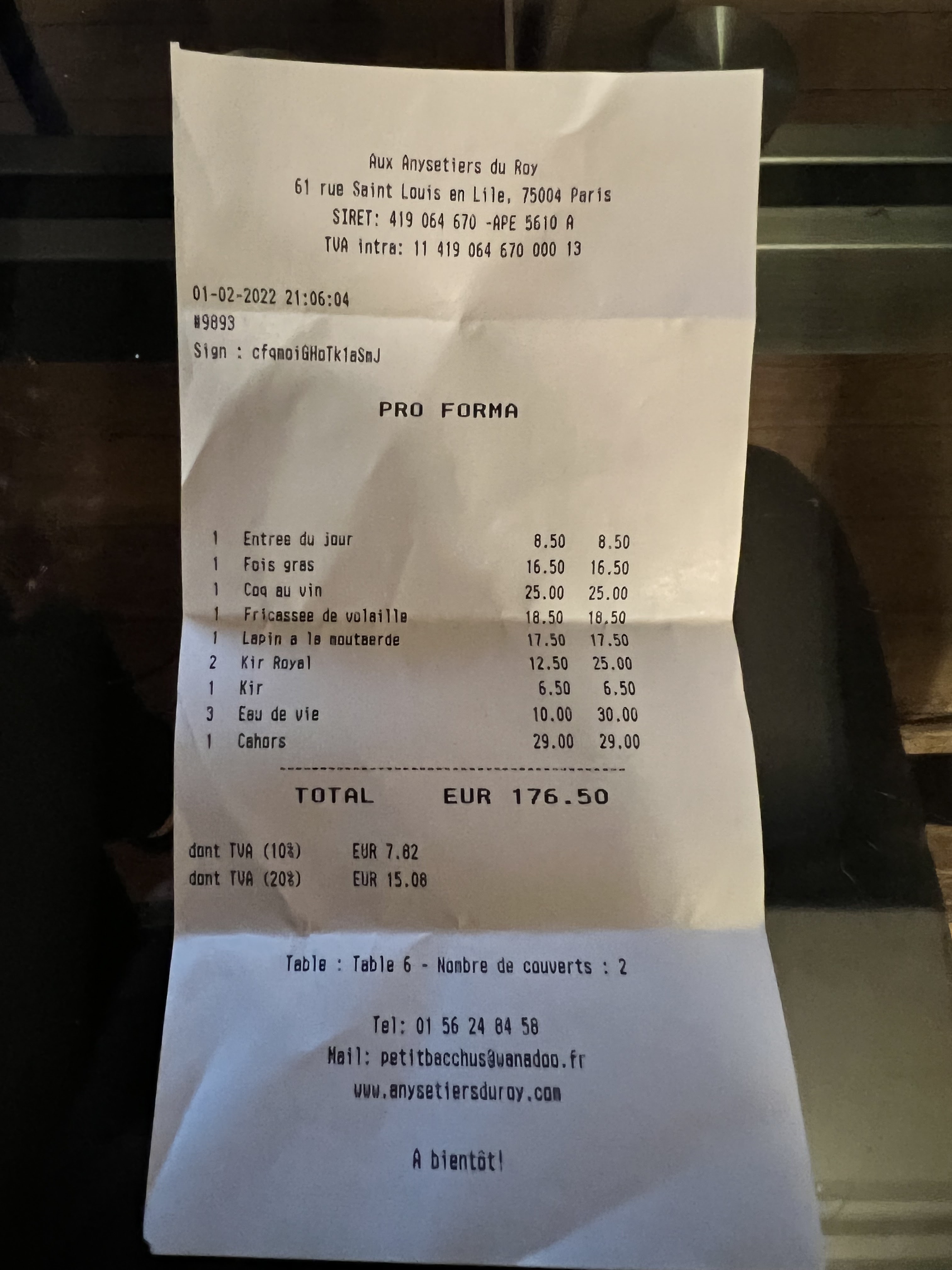 Fantastic dinner in a typical french Ile Saint Louis restaurant ! MERCI MERCI MERCI. Perfect evening