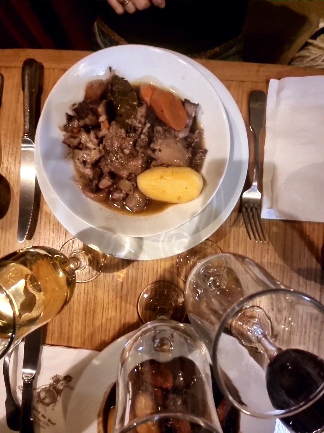 Un repas si délicieux servi par la plus gentille dame dans ce qui ressemble à une taverne médiévale. De grands classiques français dans un cadre historique. Une si belle expérience!