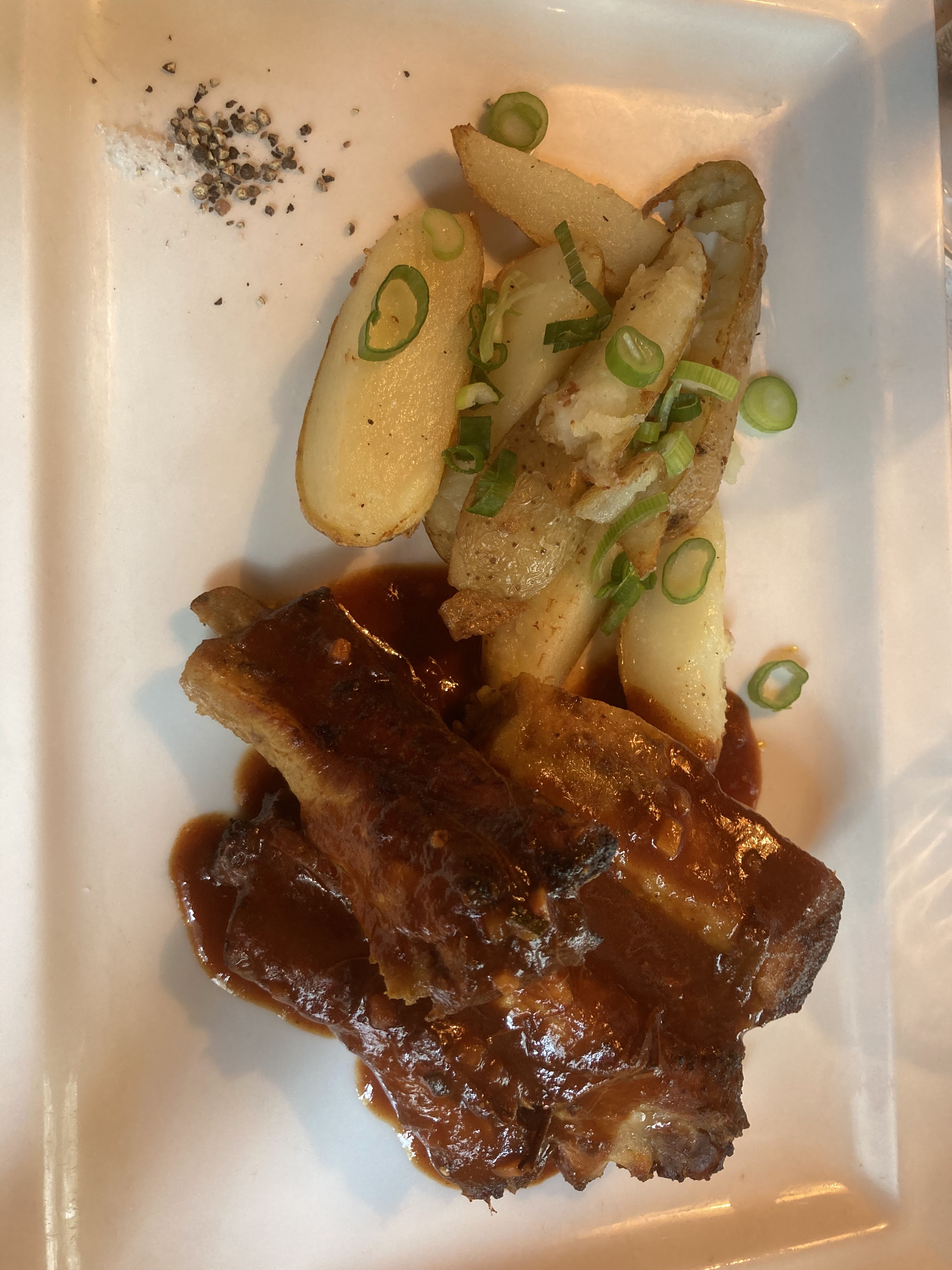 Sauce délicieuse et pommes de terre fort goûteuses. Pour le peu de viande sur les ribs et au prix payé je vous conseille de prendre un autre plat. Pour ce qui est du service, c’est la première fois que j’ai du demander par deux fois si l’on avait oublié mon dessert. Toute a fait consciente qu’il est naturel d’oublier les commandes surtout lorsqu’il y a beaucoup de monde, mais jusqu’à attendre 30 minutes c’est un peu abusé. La même personne s’étant occupé de nous pour la commande lorsque vint le payement a jugé cela meilleur de terminer sa conversation avec son amie plutôt que de nous encaisser. Elle nous avait vu attendre et à préférer rigoler et nous ignorer avant de nous faire régler le montant de notre déjeuner. Comportement déplacé.