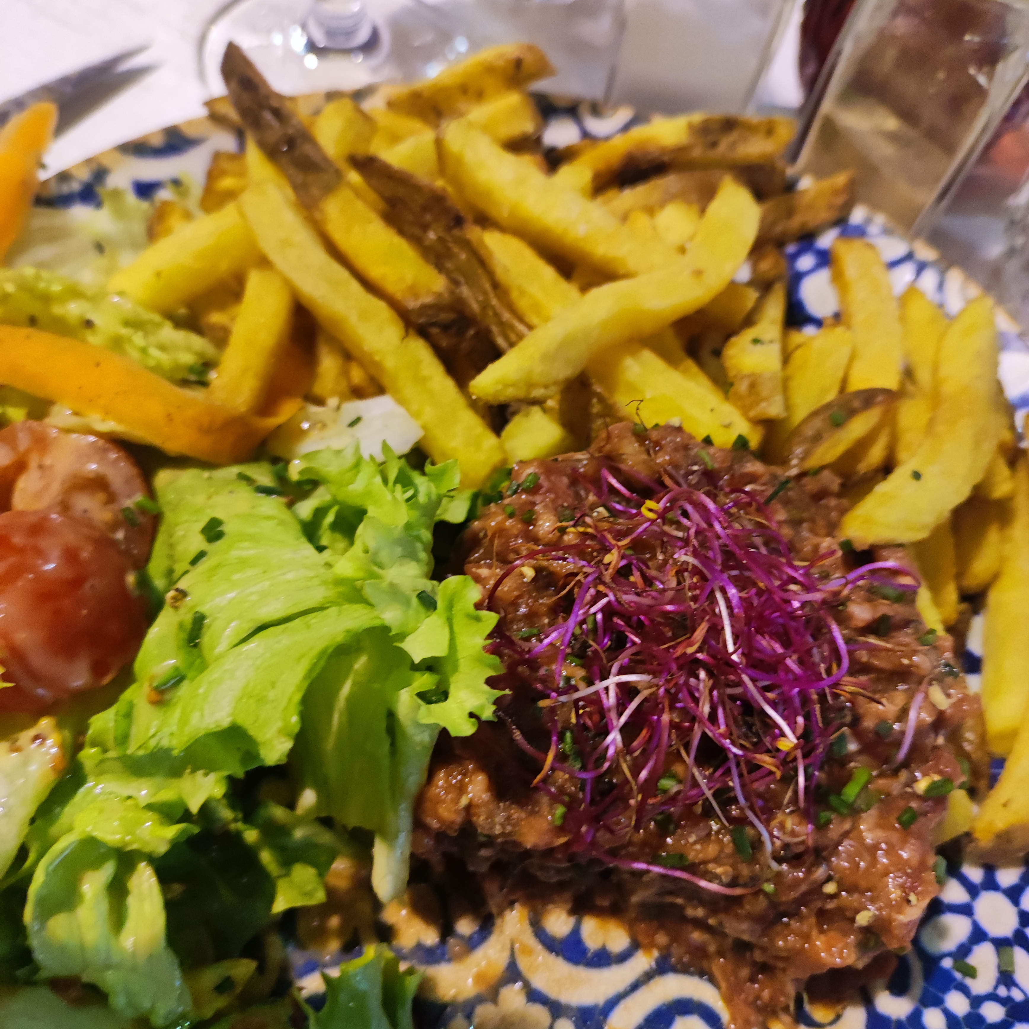 Bel accueil et un délicieux steak tartare . Final Paris Brest croquant et moelleux à souhait.