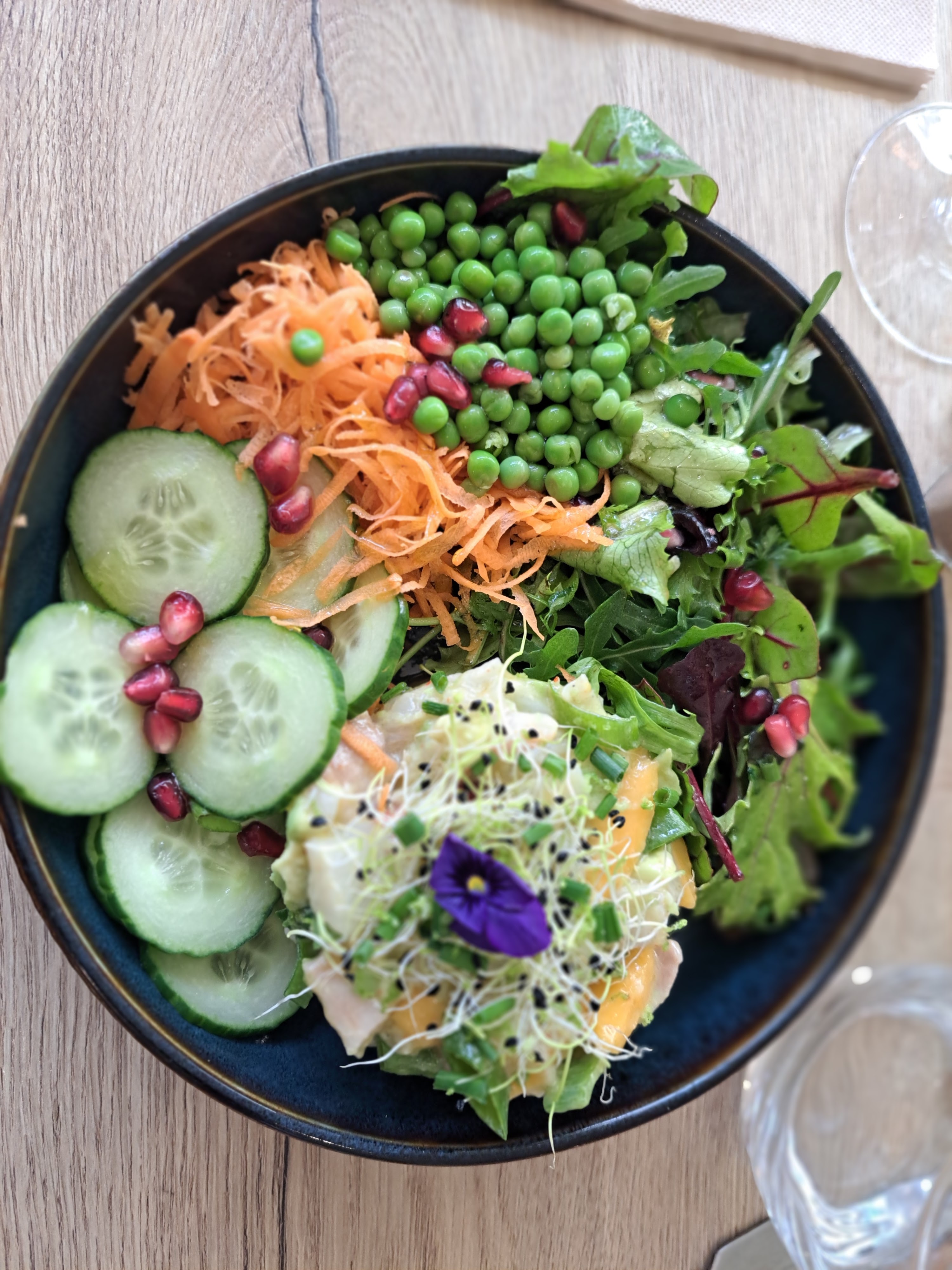 Endroit agréable, déco sympa produits frais et très bien cuisinés Service simple, pas d’ambiance particulière Un peu bruyant
