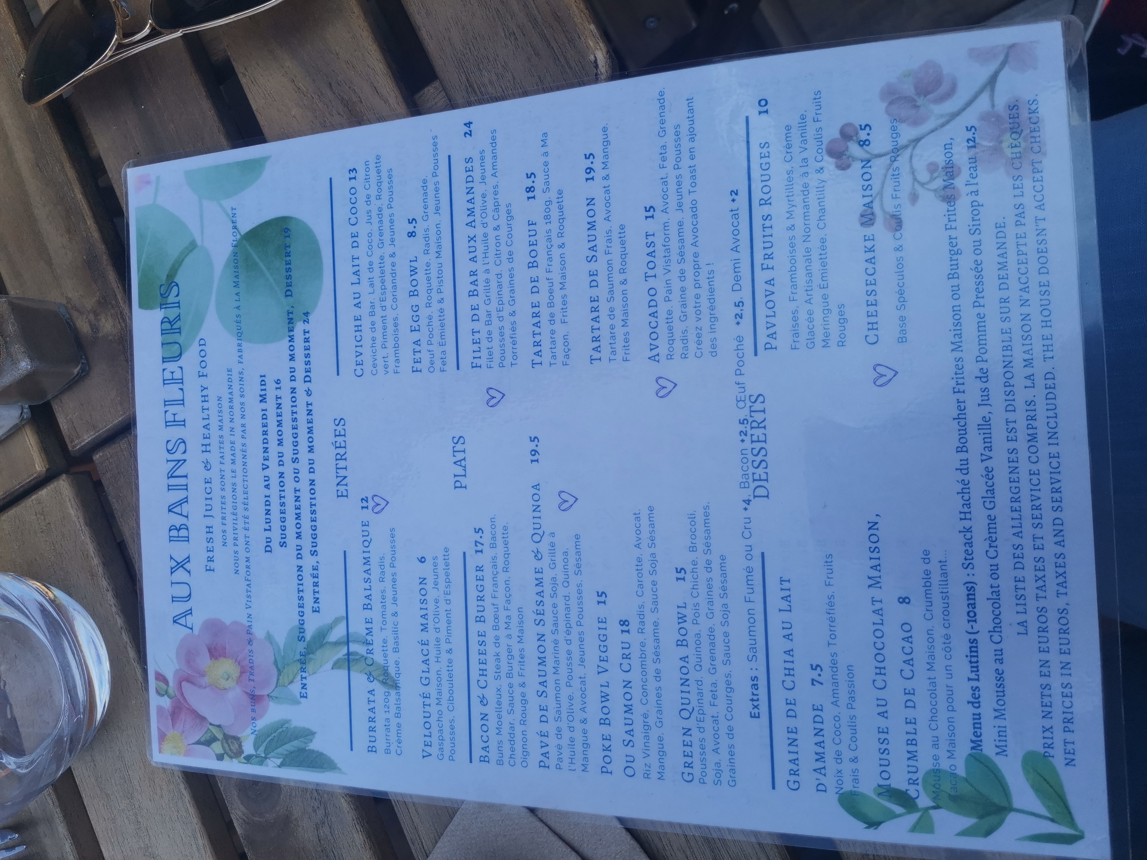 Tres bel endroit d’une excellente qualité que ce soit l’accueil, le service, le lieu, la qualité des plats, et du goût !! Tout est au rendez vous!! Effectivement il y a la mascotte qui est la mais il faut arrêter avec l’hygiène et la gêne … c’est le charme de l’endroit. Endroit conviviale, cosy et très chaleureux. Si seulement l’ensemble des restaurateurs Français pouvaient prendre exemple.. franchement depuis mon séjour ici à Houlgate les 2 restaurateurs sont top!! Vous pouvez venir “aux Bains Fleuris” les yeux fermés mais pensez à réserver car le lieu ne contient pas énormément de table !!! Prix convenable et pas très chère en vu de la qualité des plats ! Le chef présente très très bien ces plats et ils sont excellent. J’ai pris une salade avocat toat… simple mais excellent je vous le recommande.