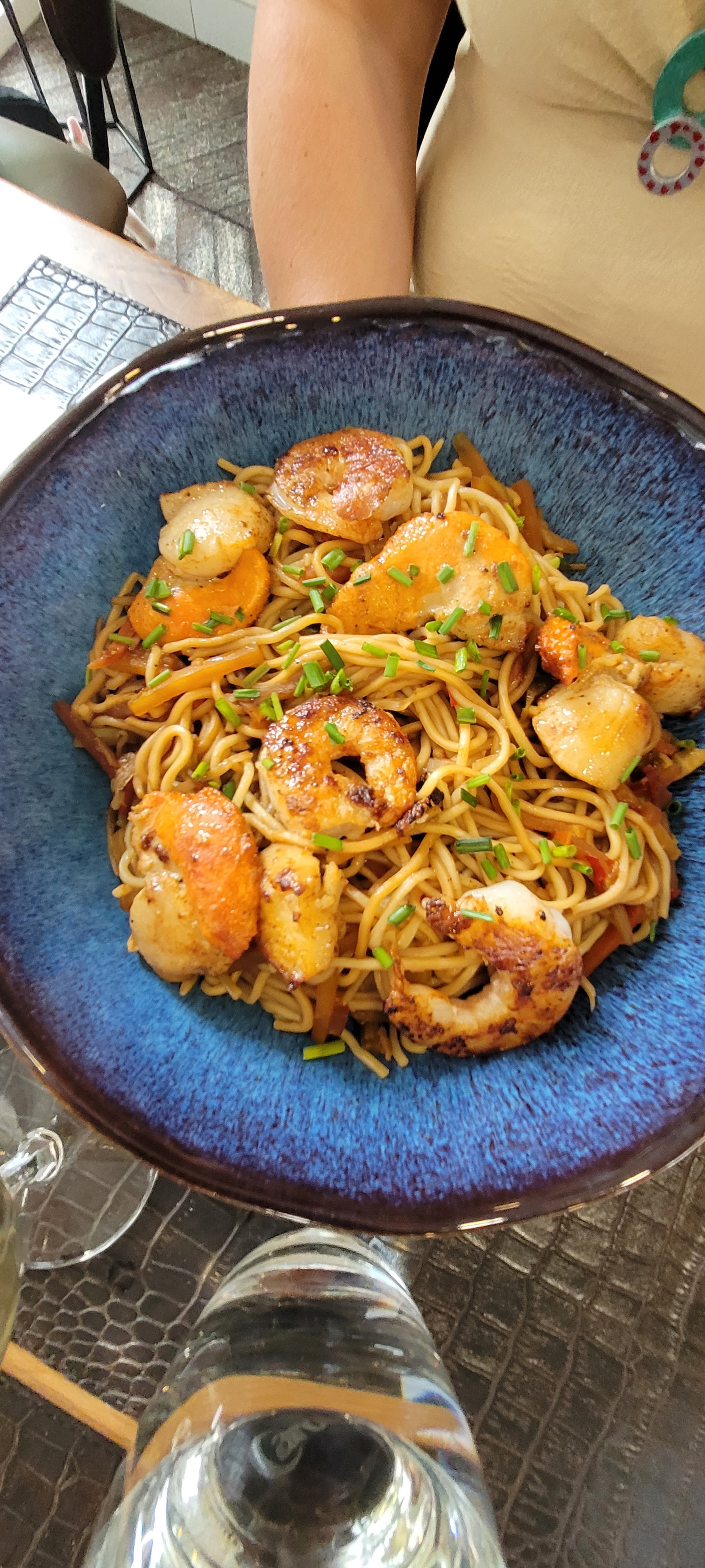 Assez catastrophique pour ma part.. l’ambiance est froide quand on n’a pas la chance d’être sur la terrasse, les cartes sont vraiment très sales, les pages collent et il y a des tâches grises/brunes, des miettes dans les pochettes… Pour le repas, pas de présentation de l’ardoise des suggestions. C’est quand on demande quel est le plat d’une autre table, au moment de la commande, qu’on apprend qu’en fait il y en avait une. Un mojito super léger, mais bon on laisse le bénéfice du doute. Par contre pour le repas… un carpaccio servi avec la viande chaude (c’est de la viande crue pourtant!). Peut être le plat est-il resté trop longtemps sous les lampes chauffantes du passe? Je l’ai quand même mangé par souci de ne pas faire penser au personnel qu’on s’acharne.. pas d’assaisonnement, juste de l’huile d’olive, du coup c’était fade. Je demande juste un peu de vinaigre balsamique, mais vu qu’il n’y en n’a plus je reçois un demi petit verre d’huile d’olive avec de la crème balsamique au fond (sauf que l’huile et la crème ne se mélangent pas) Résultat? Je suis malade le soir même, et pardon pour les détails mais je finis sur les toilettes avec la colique.. en même temps avec de la viande crue servie chaude, pas trop de surprise. C’est bien dommage.