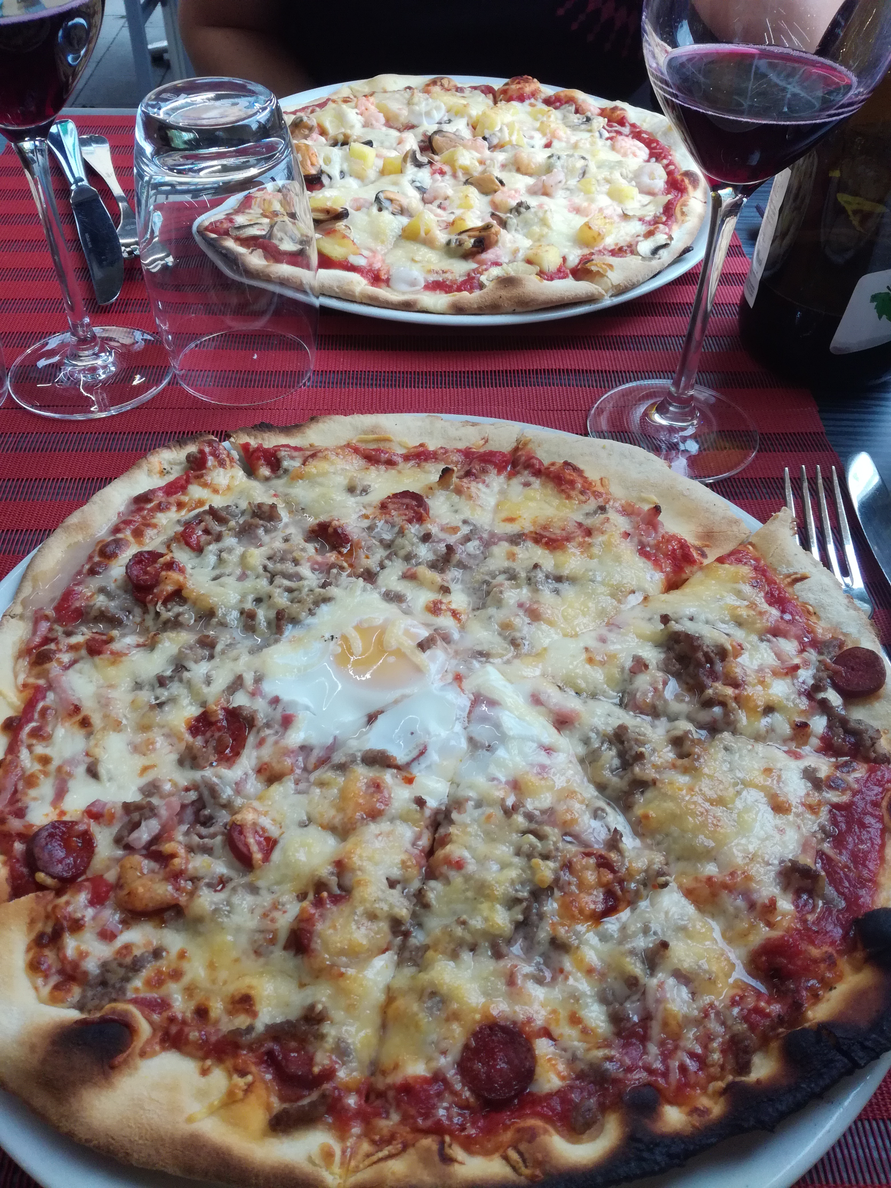 La nourriture est mangeable, mais loin d'être excellente. Pizza détrempée, viande un peu vieille, vin rouge mauvais. Le service est bon et le crémant local est sympa. J'y réfléchirais à deux fois avant d'y retourner.