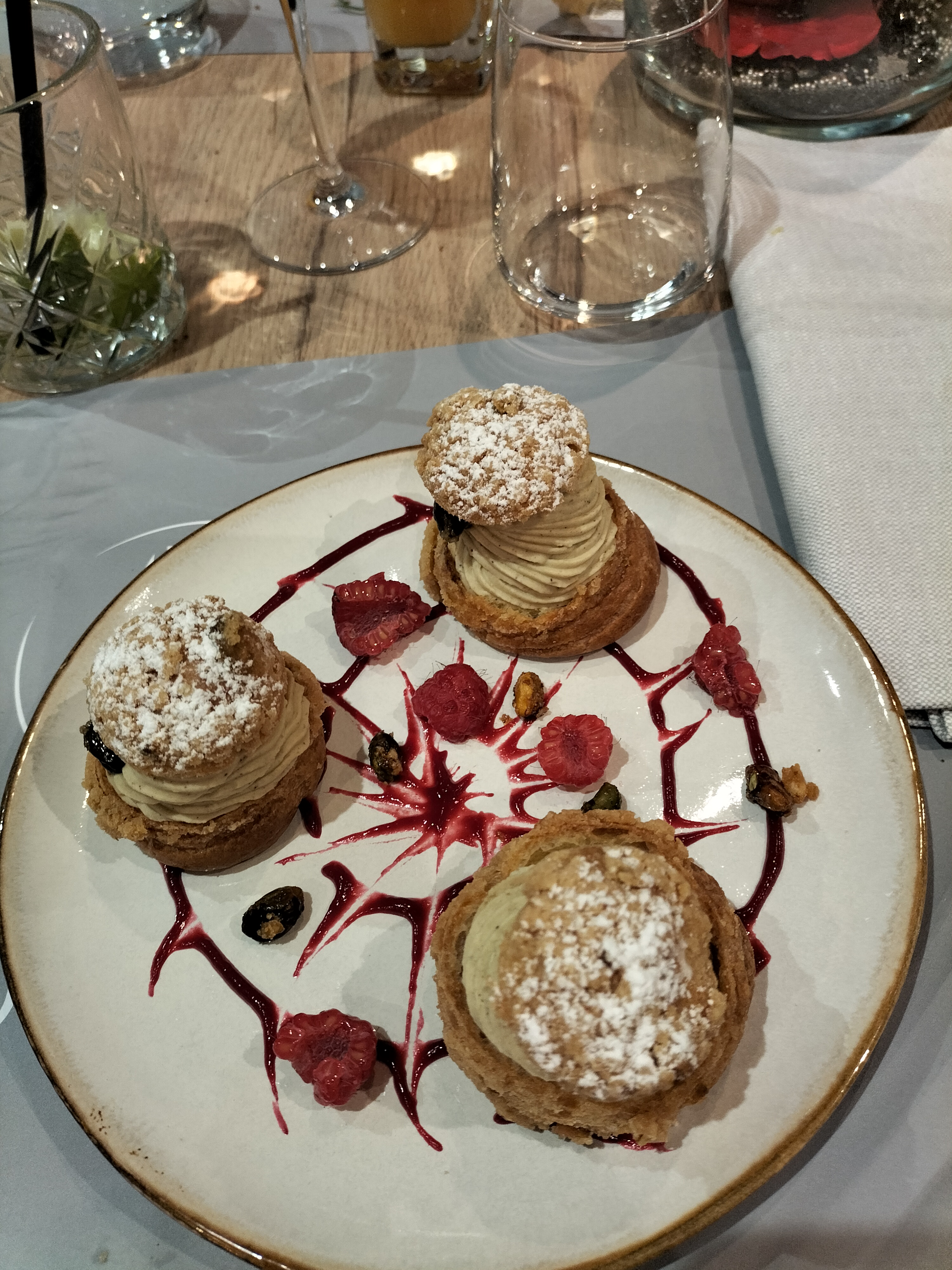 1er repas dans ce restau, diner en amoureux, plats très bien viande rouge/risotto et poisson frais avec un bel accompagnement, et choux Paris brest OK. Service très bien