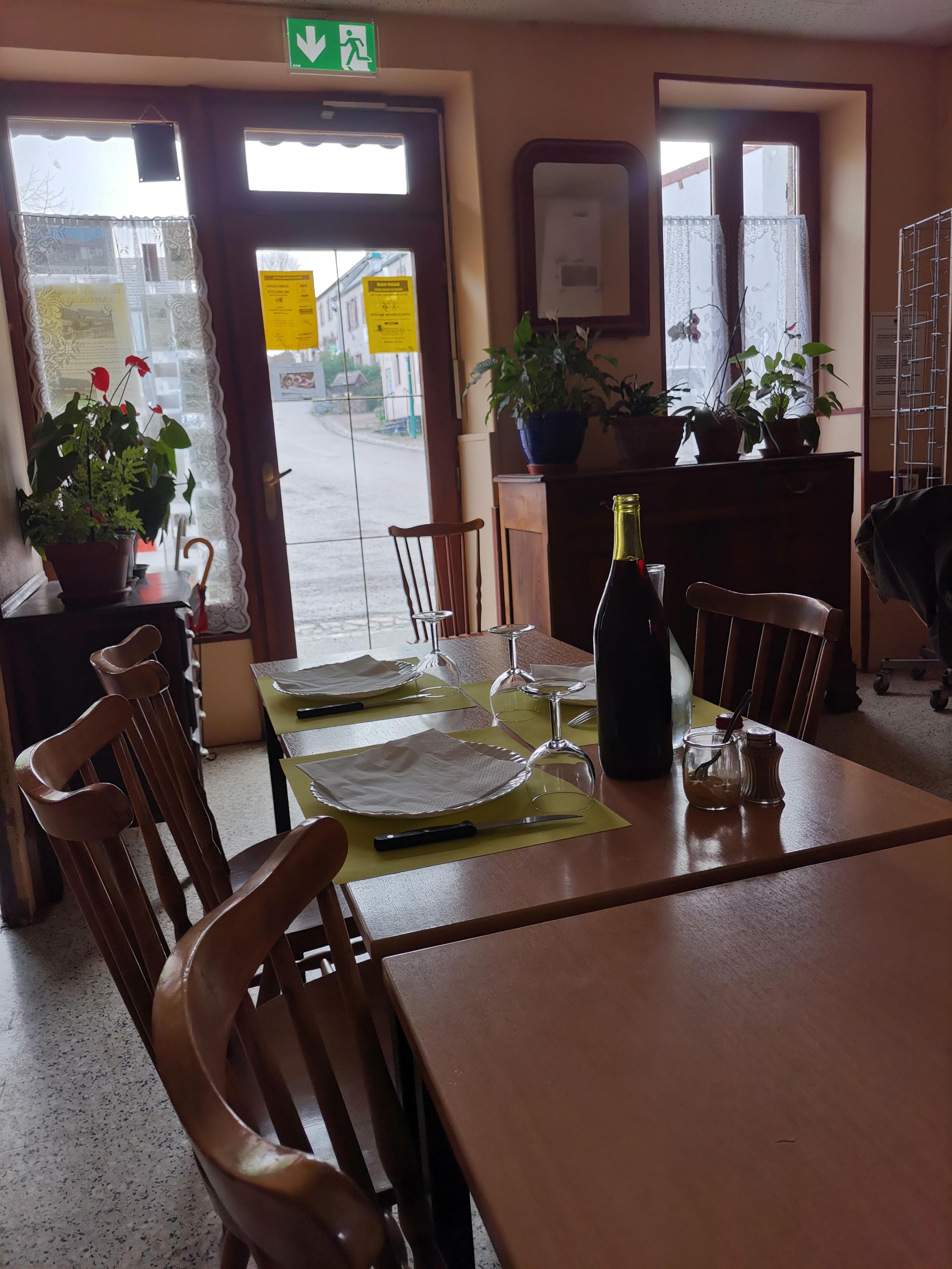 Je n'y ai pas mangé, juste bu un coup avec des membres de mon club de rando après en avoir bien bavé (ils ne savent pas ce que c'est que le plat en Montagne bourbonnaise !). Les patrons sont sympas, avenants, serviables, toujours prêts à accueillir les randonneurs qui s'aventurent sur le GR(r) 3. A tester rapidement !