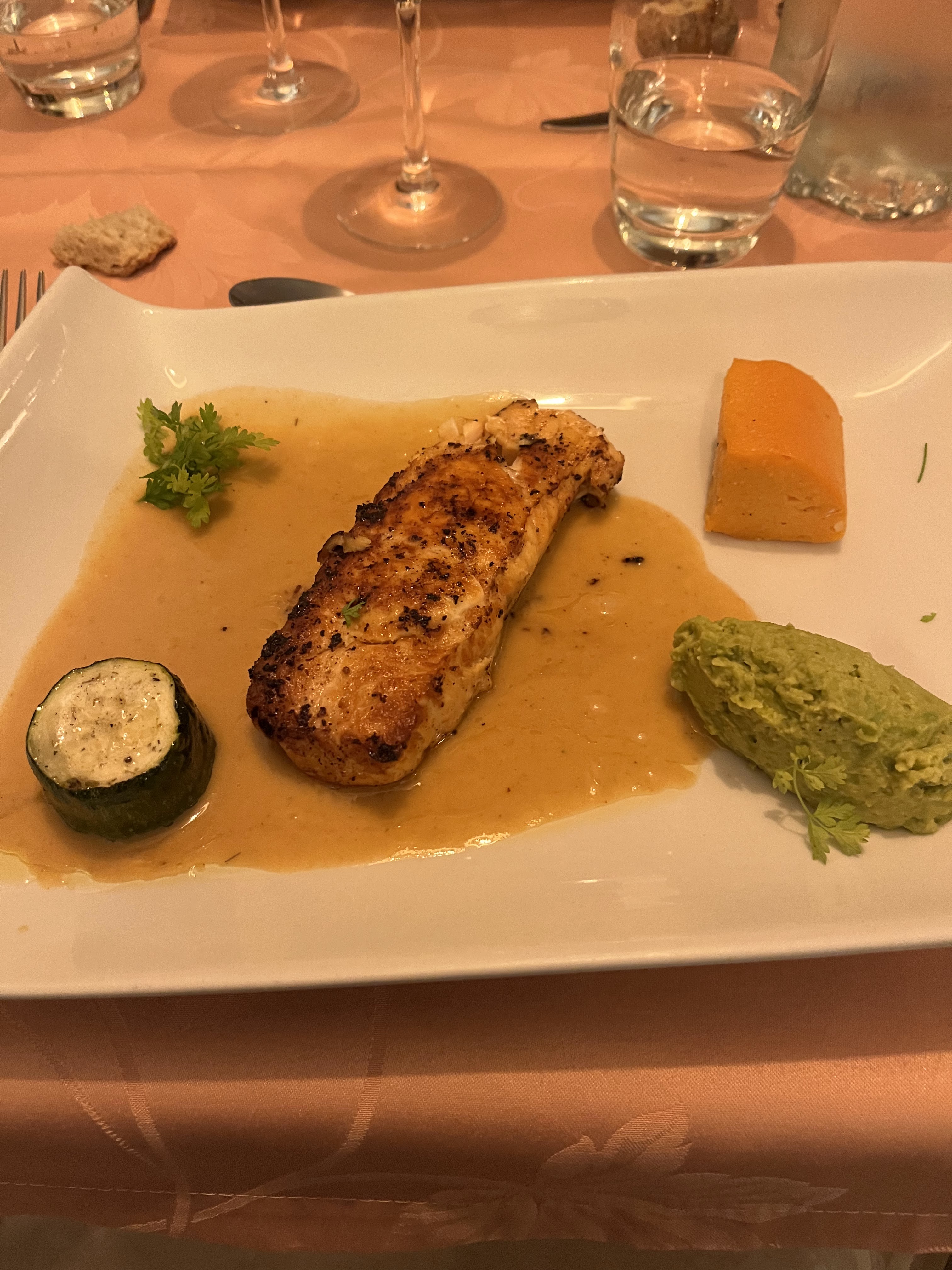 Passez votre chemin si vous souffrez d'une allergie alimentaire. Bien que prévenu largement à l'avance, vous risquez de vous retrouver avec l'option classique du chef qui na pas envie de se casser la tête et qui fait le minimum incompressible. C'est la première fois que dans un restaurant on me demande si j'avais amené mon pain sans gluten et qu'on propose en dessert une pomme et demie coupée en rondelles avec un demi kiwi en tranches également et quelques framboises pour faire joli. Pour le plat principal, le chef s'est contenté de supprimer sans autre forme de procédure l'ingrédient qui pose problème (la sauce en l’occurrence) et il a fallu réclamer pour avoir un filet d'huile pour accommoder le poisson sec, car les citrons n'étaient livrés que l'après-midi ( on était samedi....) Tout cela pour dire qu'essayer ce restaurant n'est pas l'adopter!