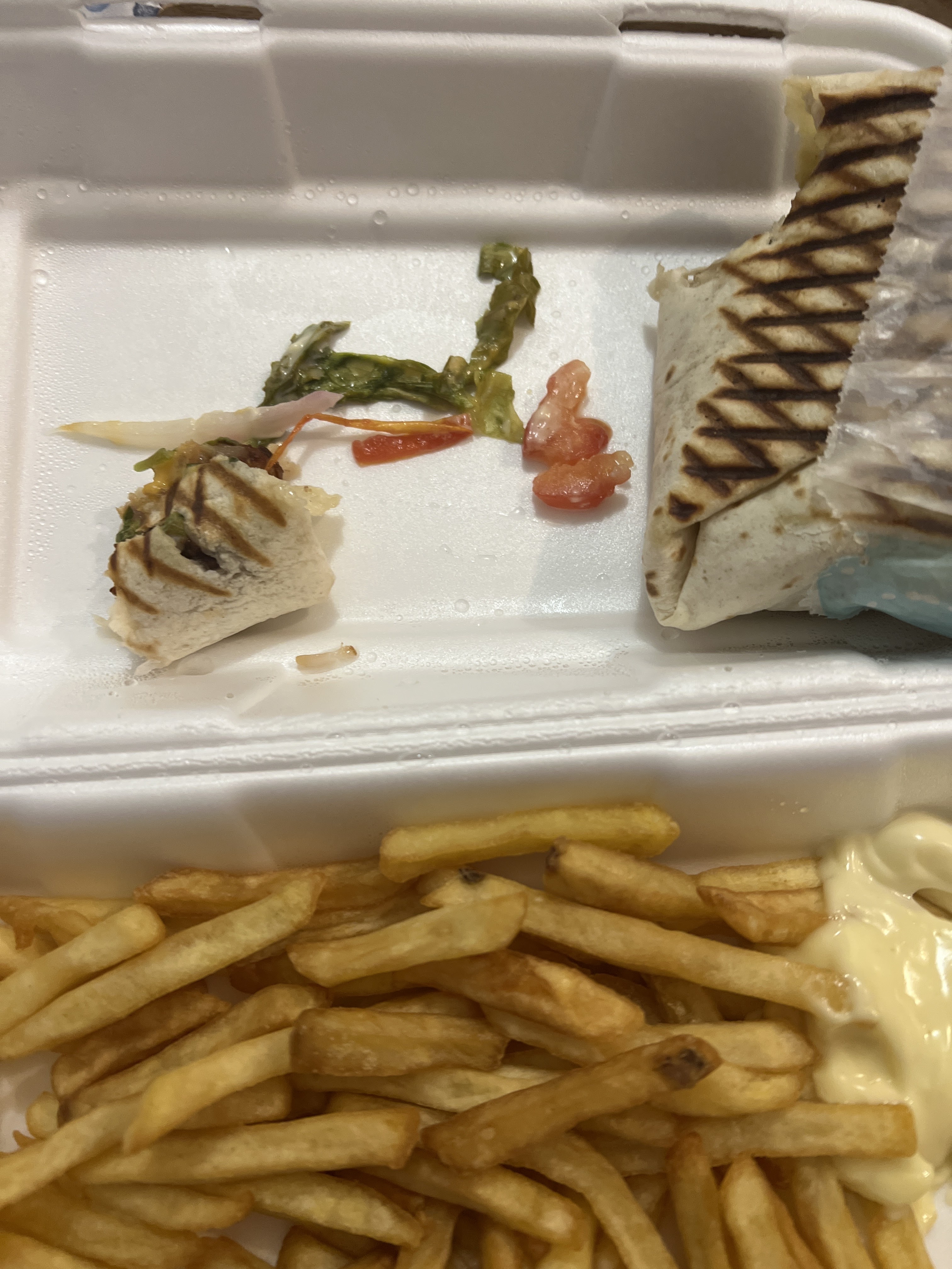 Extrêmement déçu. Ce soir j’ai commandé un kebab, on me demande si je veux complet (salade, tomate oignons) ce à quoi je répond « non nature, sans rien » une fois arrivé chez moi au premier croc je sens le goût de la salade, de la tomate et de l’oignon… Dommage ça avait l’air super bon mais grosse déception. Je pense que le fait qu’il y ait 4 personnes derrière le comptoir n’aide pas, surtout qu’il n’y avait pas beaucoup de monde quand je suis passé. Il n’a pas dû comprendre ma commande mais dans ce cas là il pouvait demander si il avait un doute. Au final pas de Kebab pour moi ce soir, je me contente des frites 🤷♂️ Je ne sais pas si j’y retournerai