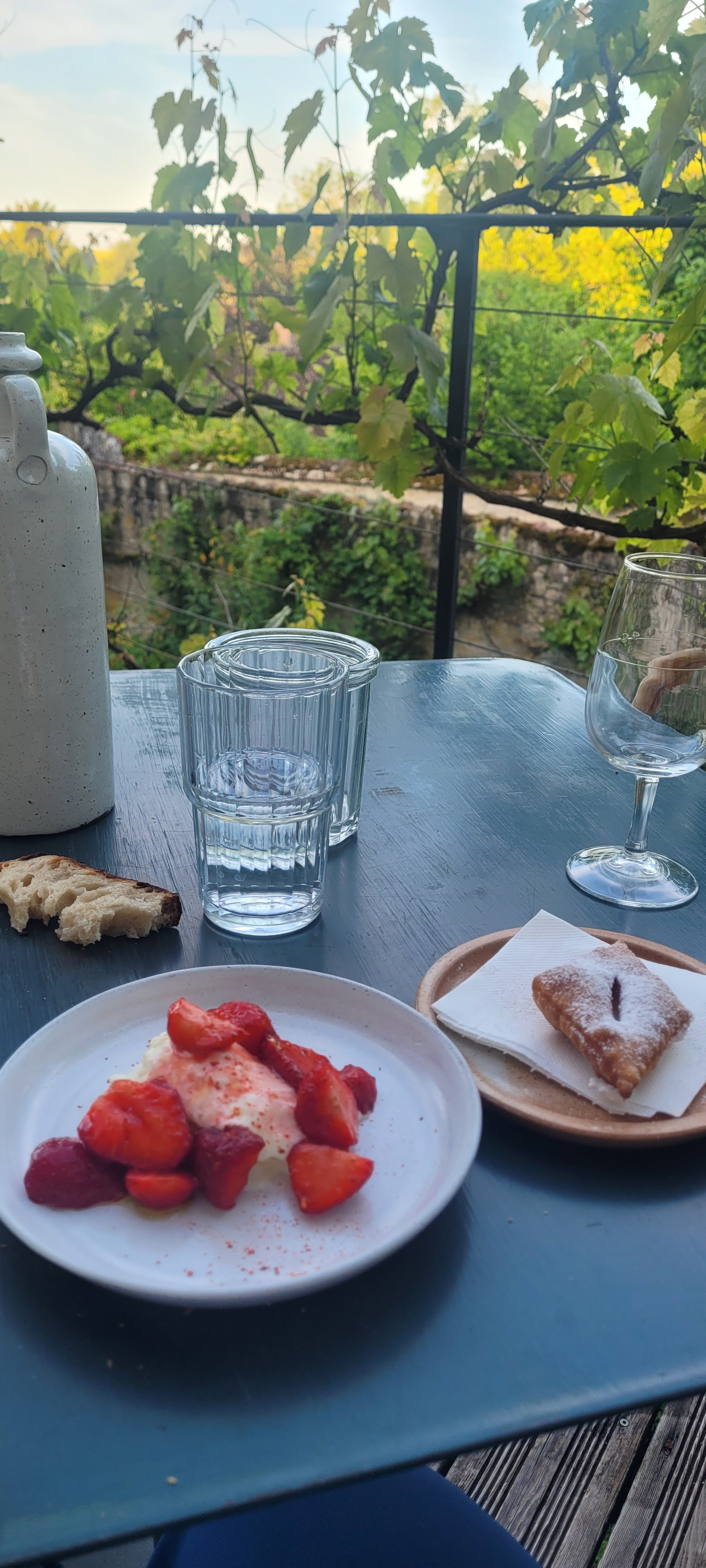 Très beau village et un joli et beau restaurant. Nous avons mangé sur le balcon. Bien, il y avait des raisins qui pendaient. Nous avons bu une bonne bouteille de vin blanc de la région. Il est clair que la nourriture est fraîche et issue de la région. Tout a un goût très pur et savoureux. Le personnel parlait très bien anglais et était très hospitalier. Recommandé!