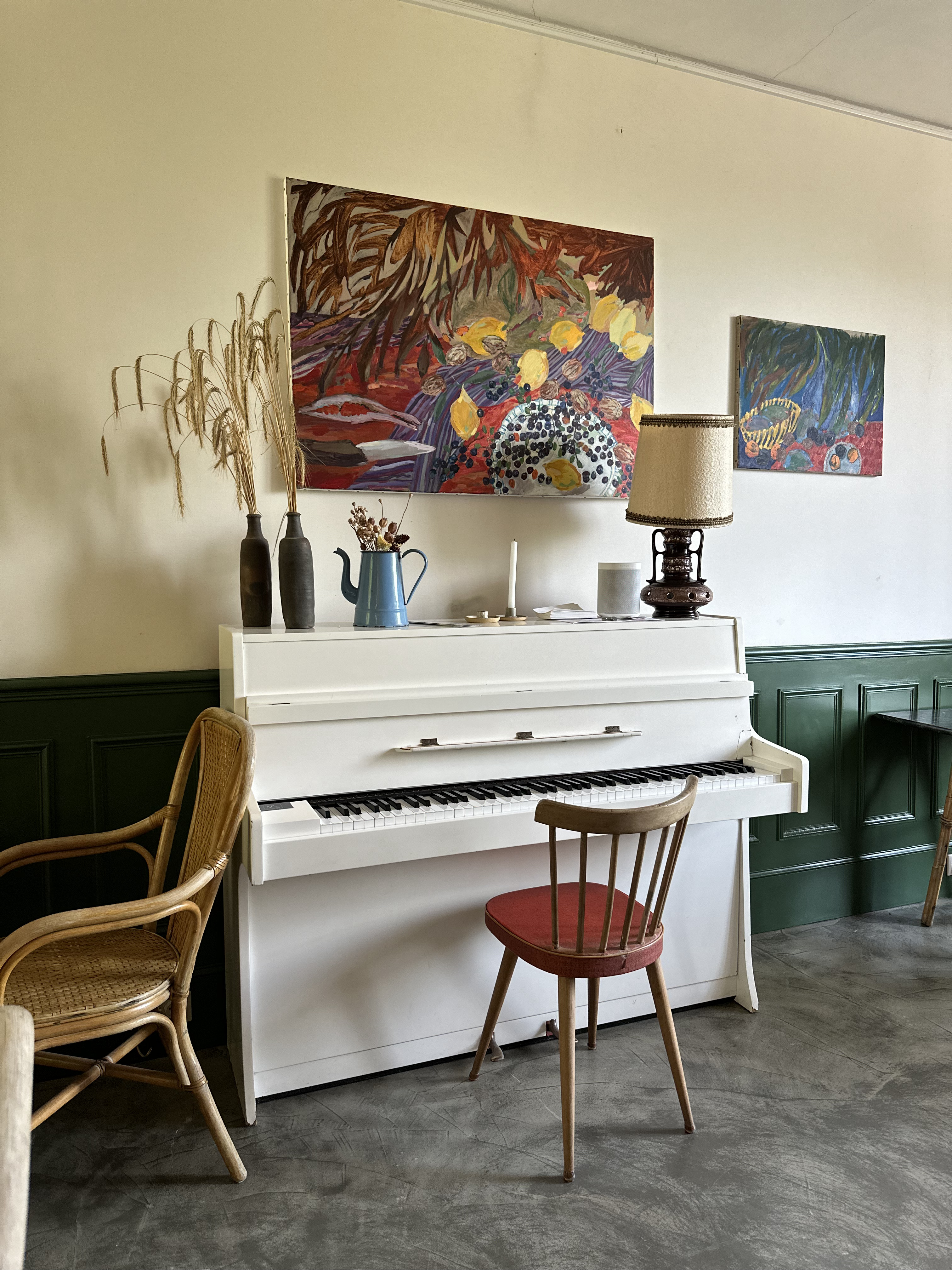 J’ai découvert par des amis, y suis allée plusieurs fois en tant que cliente, puis comme bénévole. J’y aime tout. La cuisine faite maison y est délicieuse. La démarche éthique avec les produits biologiques, locaux et de saison qui proviennent de la ferme voisine des 3 parcelles. L’emplacement dans ce joli village au charme inégalable des ruines d’église, au joli château fort, en passant par les maisons anciennes et leurs jolis jardins si bien entretenus. La jolie bâtisse du restaurant, la décoration simple et de bon goût, la présence du piano 🎹, la verdure qui lui sert d’écrin. Enfin et surtout l’âme du lieu : l’équipe adorable et internationale de passionnés, portée par Anne Claire. Tout me séduit ! Bravo pour ce magnifique projet