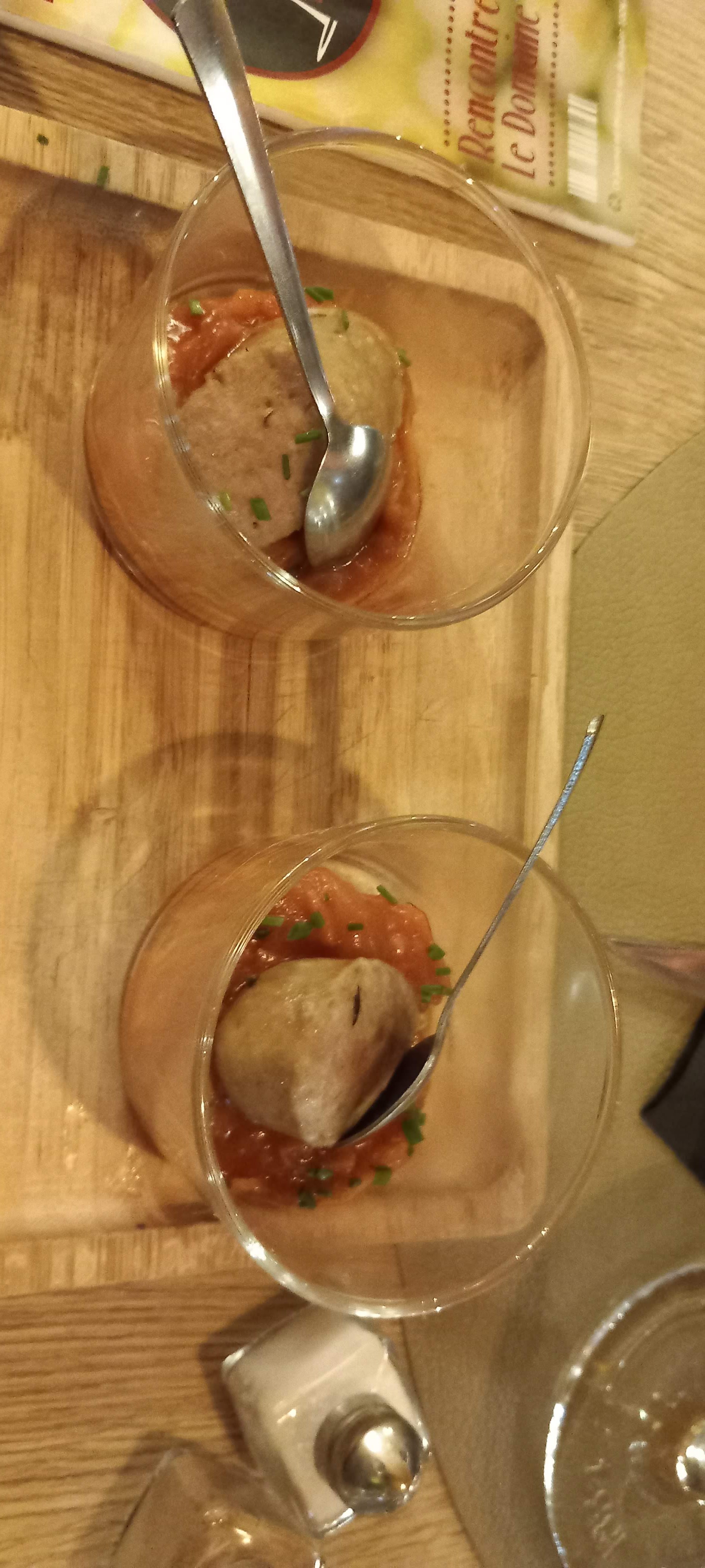 Petite verrine offerte délicieuse,plat goûteux et savoureux. Nous nous sommes bien régalés. Veau et agneau effiloché