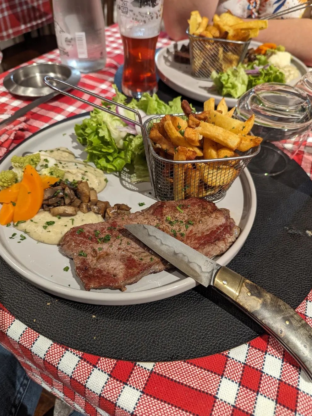 Déjeuner bien mérité dans ce bouchon lyonnais à Clermont ! Andouillette sauce moutarde pour Aurore et tablier de sapeur sauce gribiche pour moi. Très bon moment. Merci pour l’accueil chaleureux de Louis ! On recommande ce restaurant avec joie.