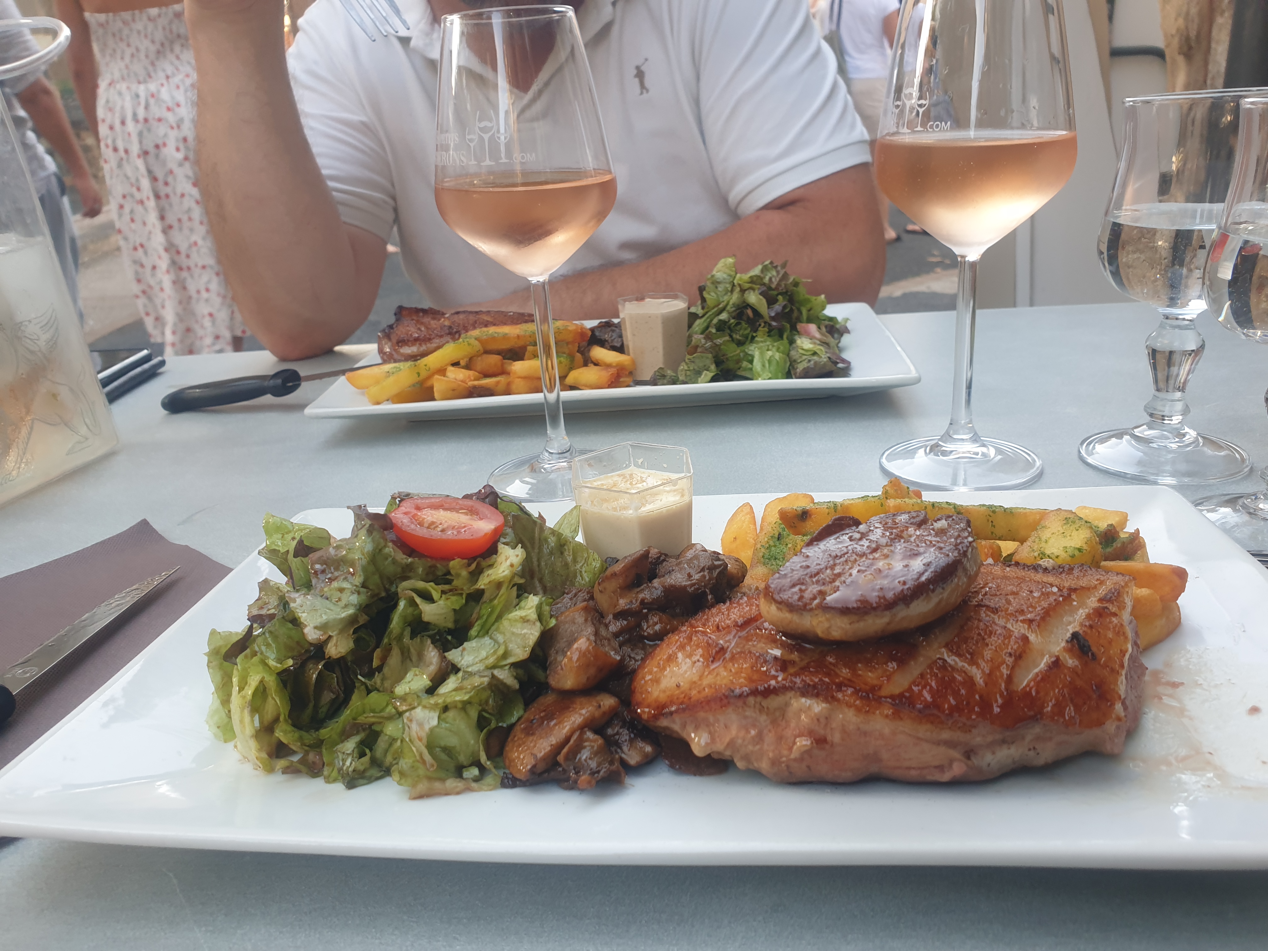 Pour Résumé: un Resto pour « touristes » terrasse en extérieure sympa…service rapide ( voir trop, on aimerait pouvoir profiter du paysage, se détendre) une serveuse (qui sourit … on attend plus de convivialité, nous parler des plats… pas juste prendre une commande- sinon on va dans une cafétéria) un personnel qui nous fait participer à sa pause clope, au porte du restaurant. La cuisine est bonne sans nous « enchantée » pour autant. Lors d’un séjour dans le Périgord, il serait peut-être favorable de privilégier des produits sélectionnés chez les -bons producteurs- locaux. Dommage….