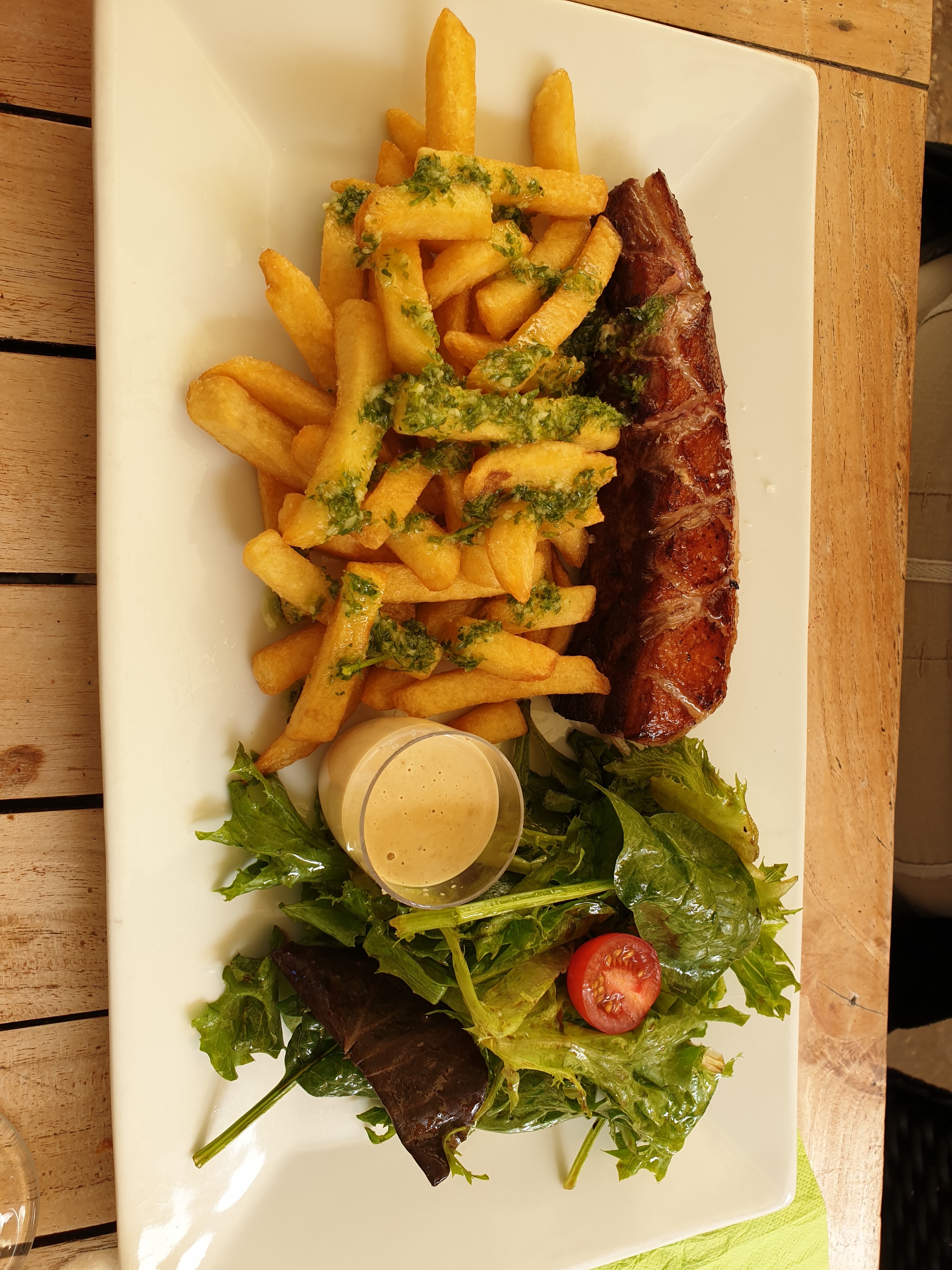 Super bon,viande excellente et surtout l'assiette apéritif ! Terrasse hyper agréable l'été ! Petit bémol, dommage que ça soit pas des vrais patates sarladaise.