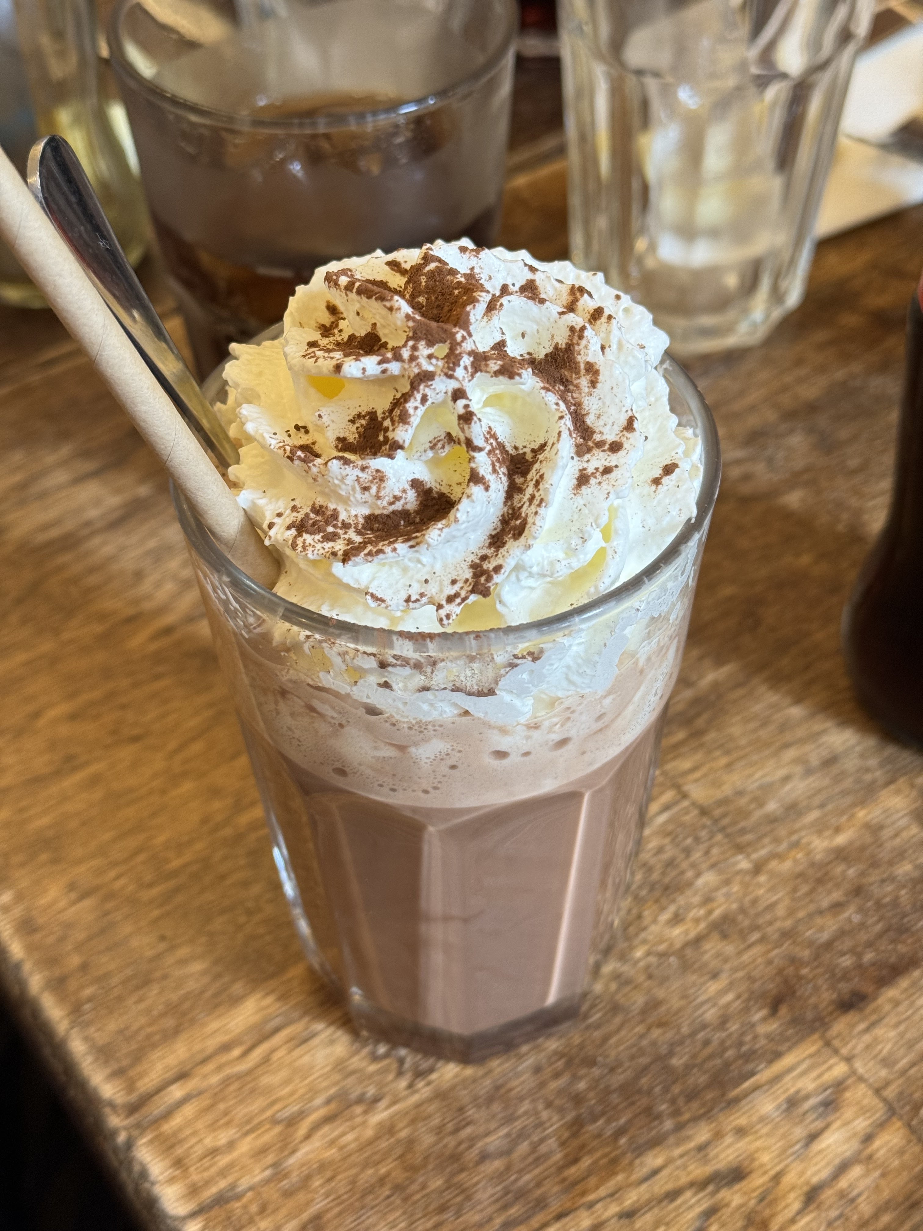 Chocolat chaud fait maison plein de flotte et sans goût, voilà ce que j'ai payé 6€. Je suis vraiment déçu. Et le clou du spectacle... wc très salle j'ai du faire demi tour. Plus jamais.