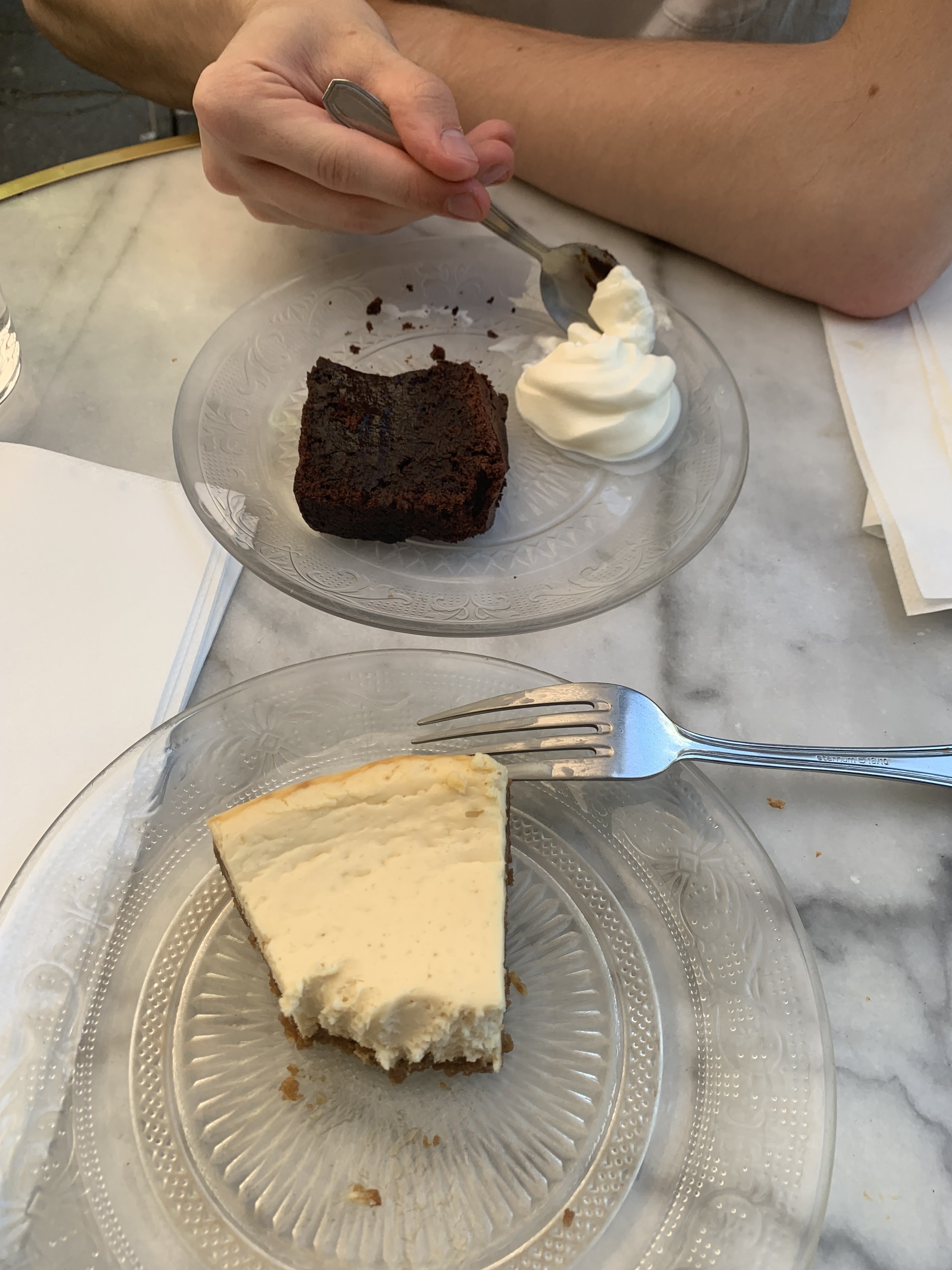 Nous sommes arrivés vers 15h30 et ils ne servaient plus de plats cuisinés. Déçus nous nous sommes rabattus sur des déserts, qui étaient plutôt bons mais les parts trop petites à tel point que j’ai du recommander une deuxième part de fondant chocolat qui m’a été servie glacé.