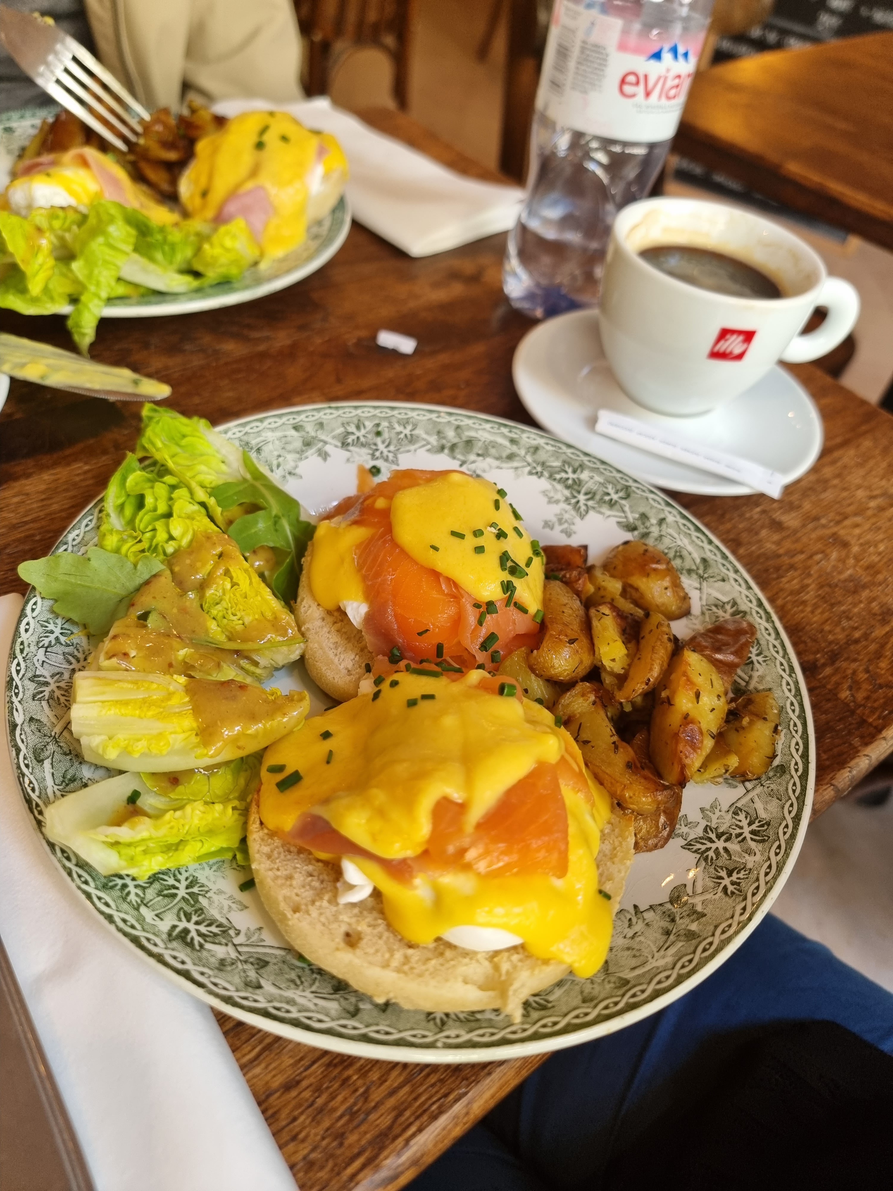 De visite à Paris pour un concert il nous fallait passer par un brunch ! Quelques recherches Google et coup de cœur sur ce restaurant ! Nous réservons pour un brunch ( servi que le week-end pas en semaine !) et malheureusement nous arrivons en retard à cause des transports, excusés, la serveuse d’une grande gentillesse et d’une énergie fulgurante nous a tout de même trouvé une table en terrasse. Brunch très complet on a vraiment eu du mal à finir tellement c’était copieux ! Pas inspirés par les jus pressés mais détrompez vous ils étaient exquis !!!! Le cheesecake aurait mérité d’être un peu plus croustillant mais en tant que cuisinière je comprends🙏🏼 Bref allez y les yeux fermés ! Un grand merci pour cet expérience nous reviendrons 😁