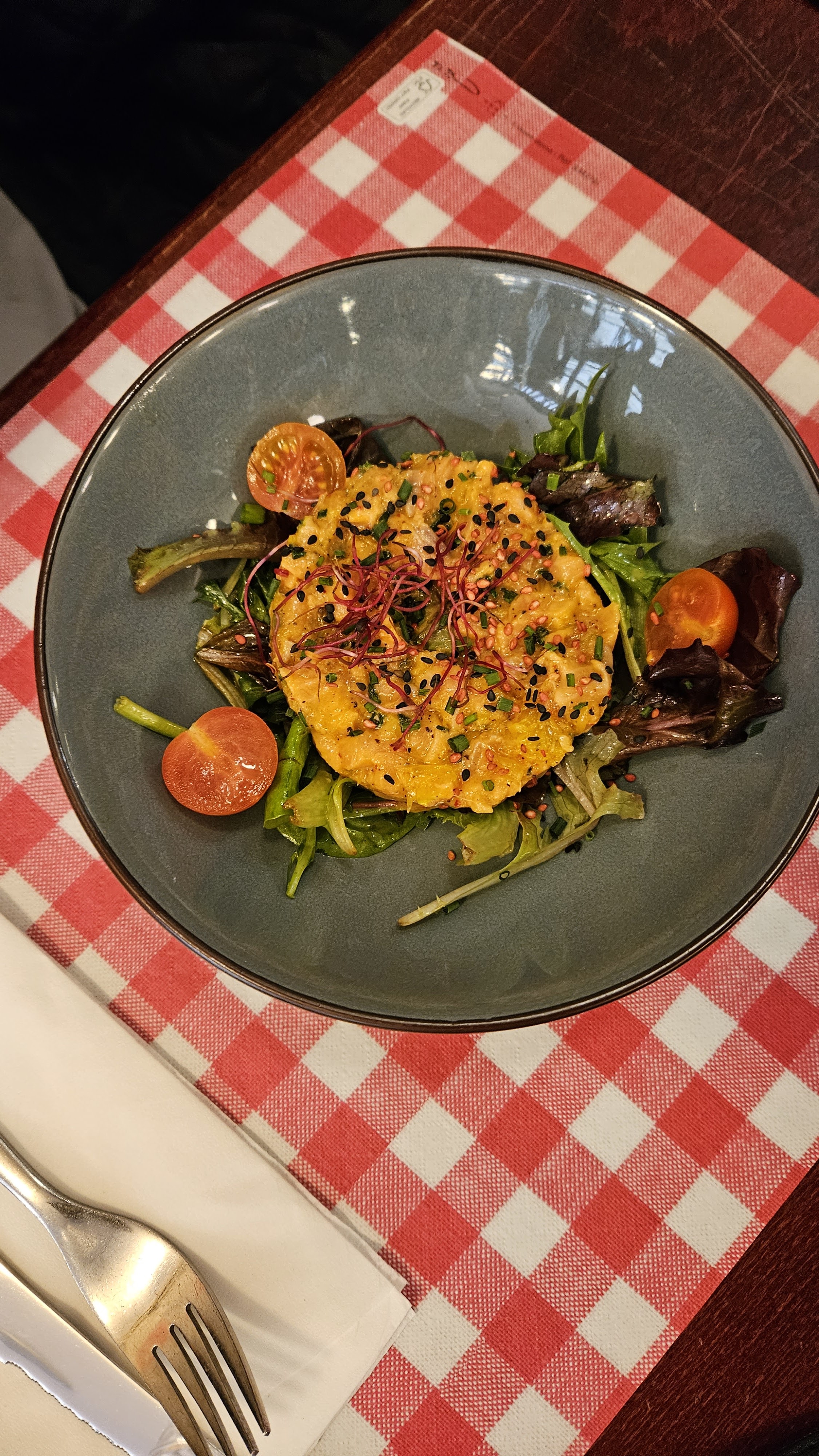 Nous avons passé un délicieux moment. Un grand merci à Claire pour sa recommandation du saumon… une tuerie ! Tout était excellent, frais et fait maison. Allez y les yeux fermés ! 🙈