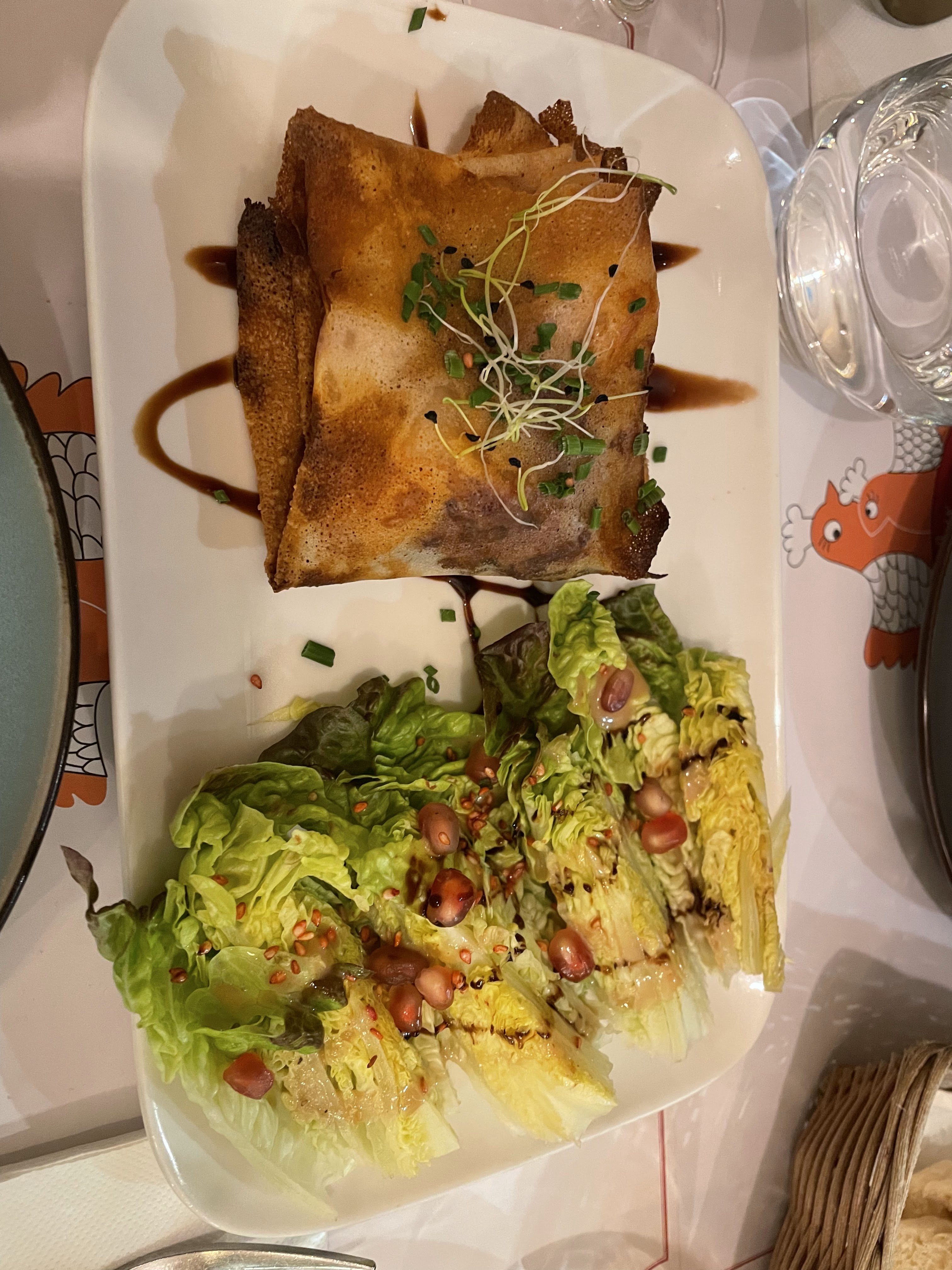 Nous avons beaucoup aimé les propositions de la carte. Nous avons pris plusieurs entrée toutes très bien préparée ! La rue est calme et plein de charme , nous étions très bien installée en terrasse