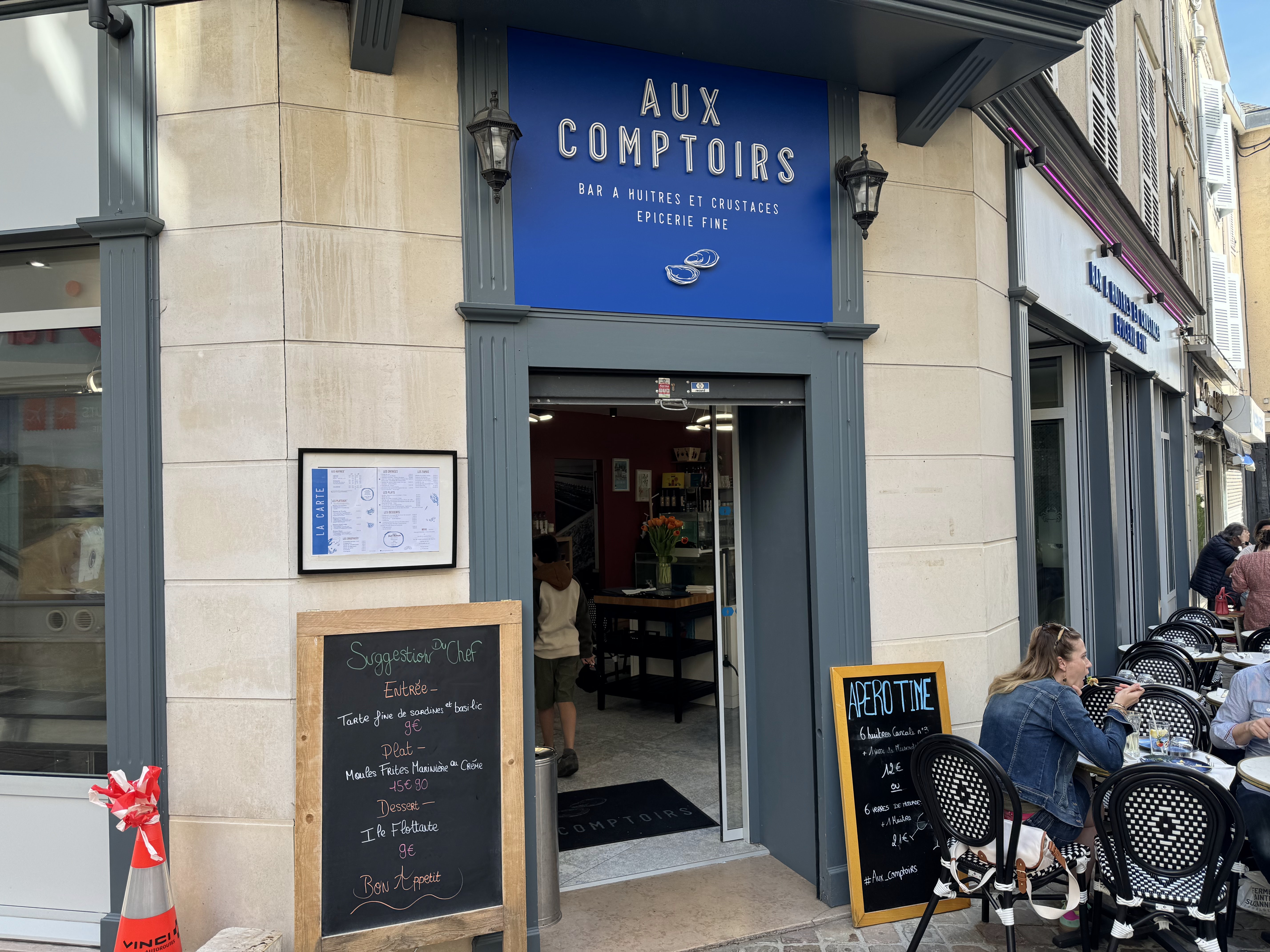 Ah, ..enfin du nouveau et des embruns, dans l’ancienne charcuterie La Strasbourgeoise, (fermée il y a un bon moment ) . Préparez vous moussaillons, car la mer , l'iode , la Bretagne, les vagues et les coquillages( et pas que cela!) arrivent rue de la Pie avec un nouveau concept fort sympathique Aux Comptoirs : un bar à huîtres fruits de mer avec restauration de 18 places dans un esprit de convivialité , mais aussi une chouette boutique ! ! En gros , tous les produits que vous pouvez acheter et emporter dans la boutique , vous pouvez aussi le consommer sur place . Malin et gourmand , L'endroit est Relax et moderne dans une fourchette de prix dans un budget de, 'raisonnable a sortie gastronomique selon le choix du produit . C 'est parfait pour manger avec des collegues ou un client de longue date a midi, et le soir avec des amis ou la famille ( menu enfant dispo)... sur la carte : huîtres creuses de Cancal ou plates Belon , huîtres Joël Dupluch ( parcs, perles , spéciales), Marennes , fines de Normandie, Tapas de la mer , fruits de mer en plateaux ou une assiette dégustation , planche de charcuterie , planche fromages , planche mixte ,etc mais aussi foie gras, Caviar de Neuvic , homard bleu , langoustines , paté cognac , paté piment d'Espelette , paté boudin noir , escargots , vins, babas de St Malo, sans oublier les plats du chef .. De quoi pousser la porte de Aux Comptoirs , et avoir une faim de loup de mer (maintenant il faut renommer la rue , rue de la mouette patron ! ).