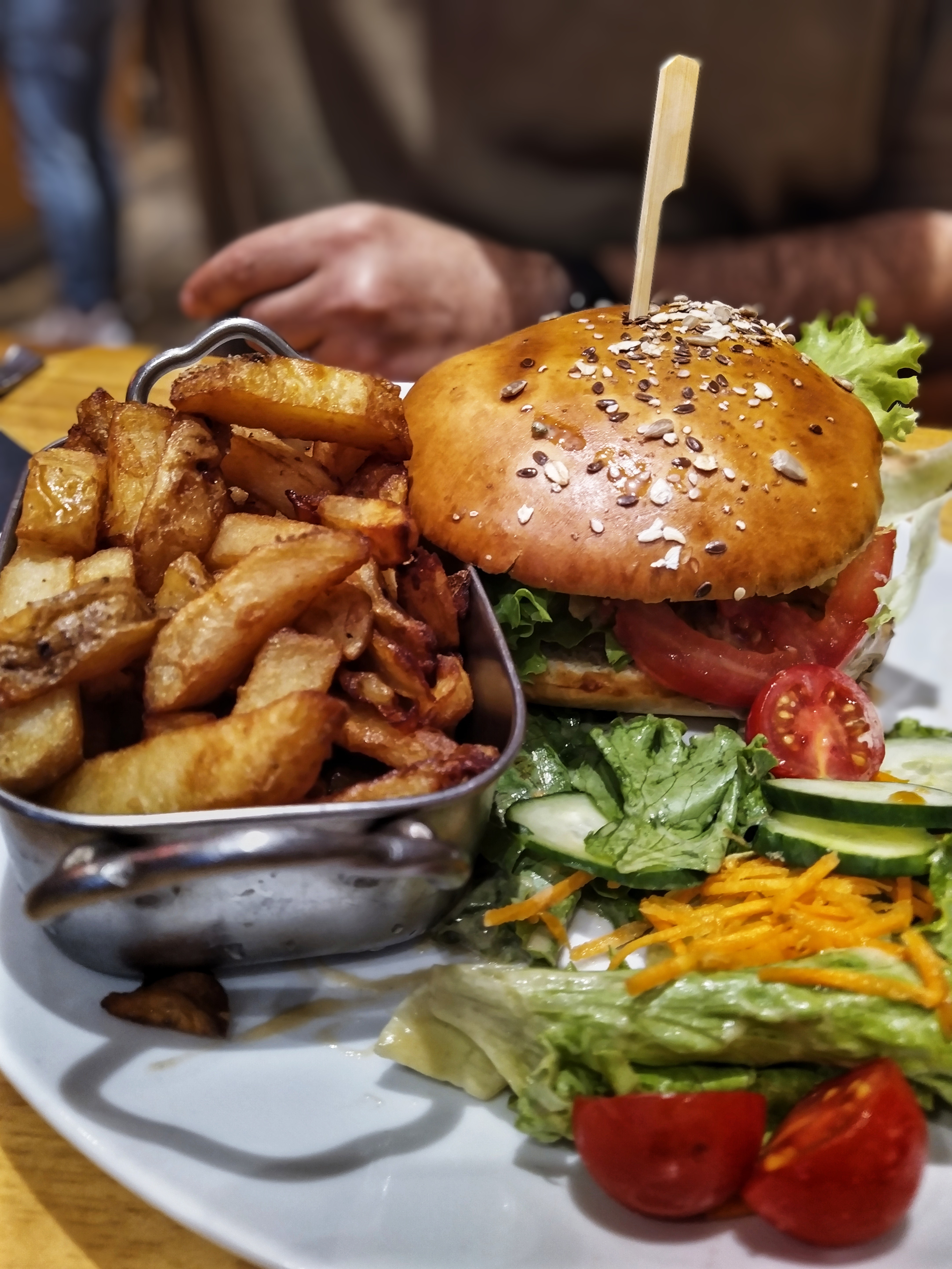 Le barman / serveur est sympathique mais très occupé. Il faut dire que les tables se remplissent à vue d'œil. Le cadre est agréable. Bien contents qu'une table soit disponible à l'écart du groupe de jeunes un peu bruyant. Le burger maison est excellent (dommage pas de photo). Les frites semblent être faites maison et sont excellentes. Un choix conséquent de bières permet d'en trouver une à son goût (ou presque car il n'y a pas de brune 🙃). Je recommande vraiment ce bar restaurant 👍