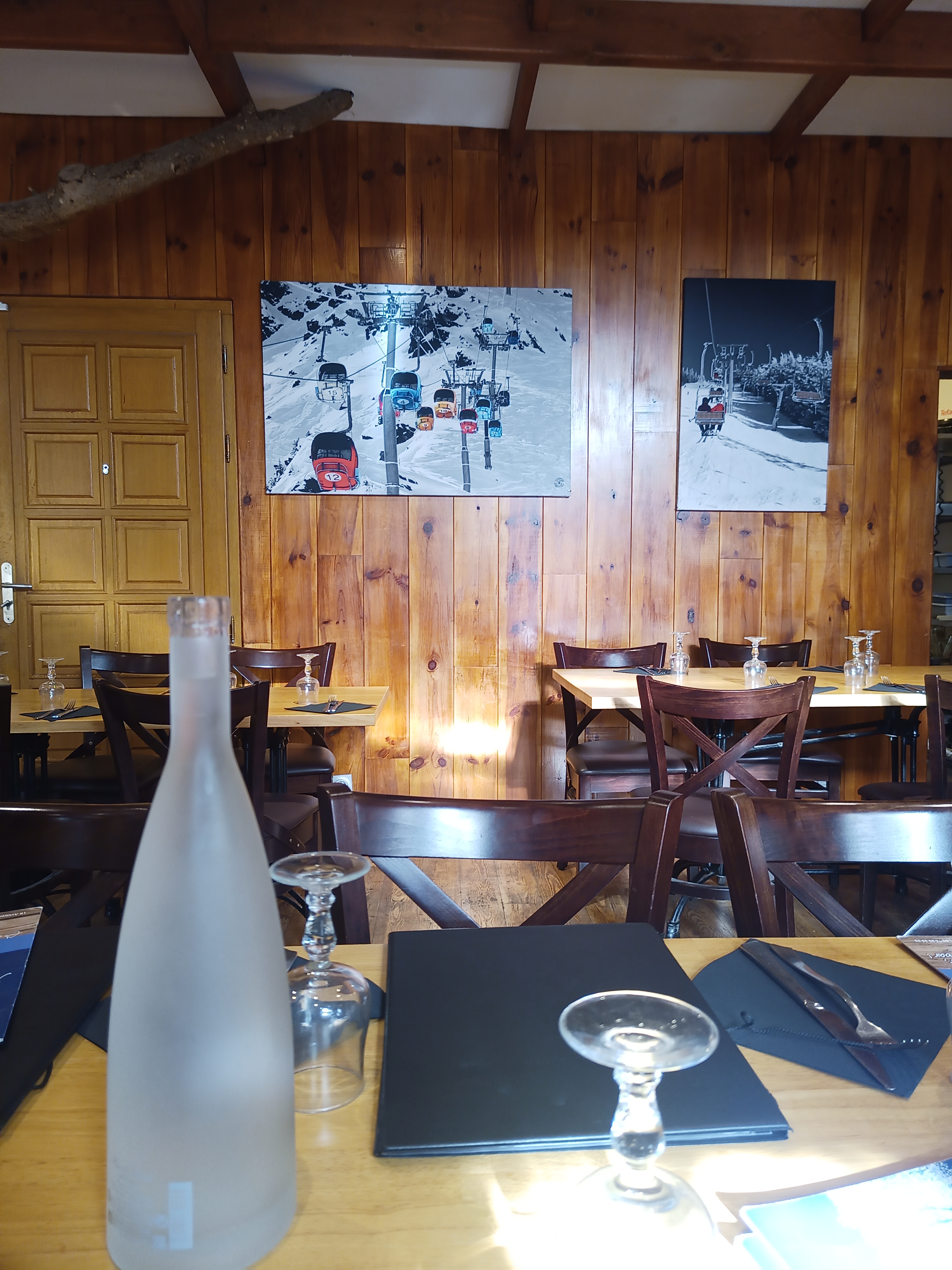 Si vous cherchez un restaurant après 22h (comme nous après un spectacle) vous pouvez réservé sans problème. Très bien reçu, la carte est variée peu plaire à tous Ambiance de chalet montagnard, vous pouvez même manger dans une petite télécabine sur la terrasse ! Service assez rapide nous n'avons pas trop attendu