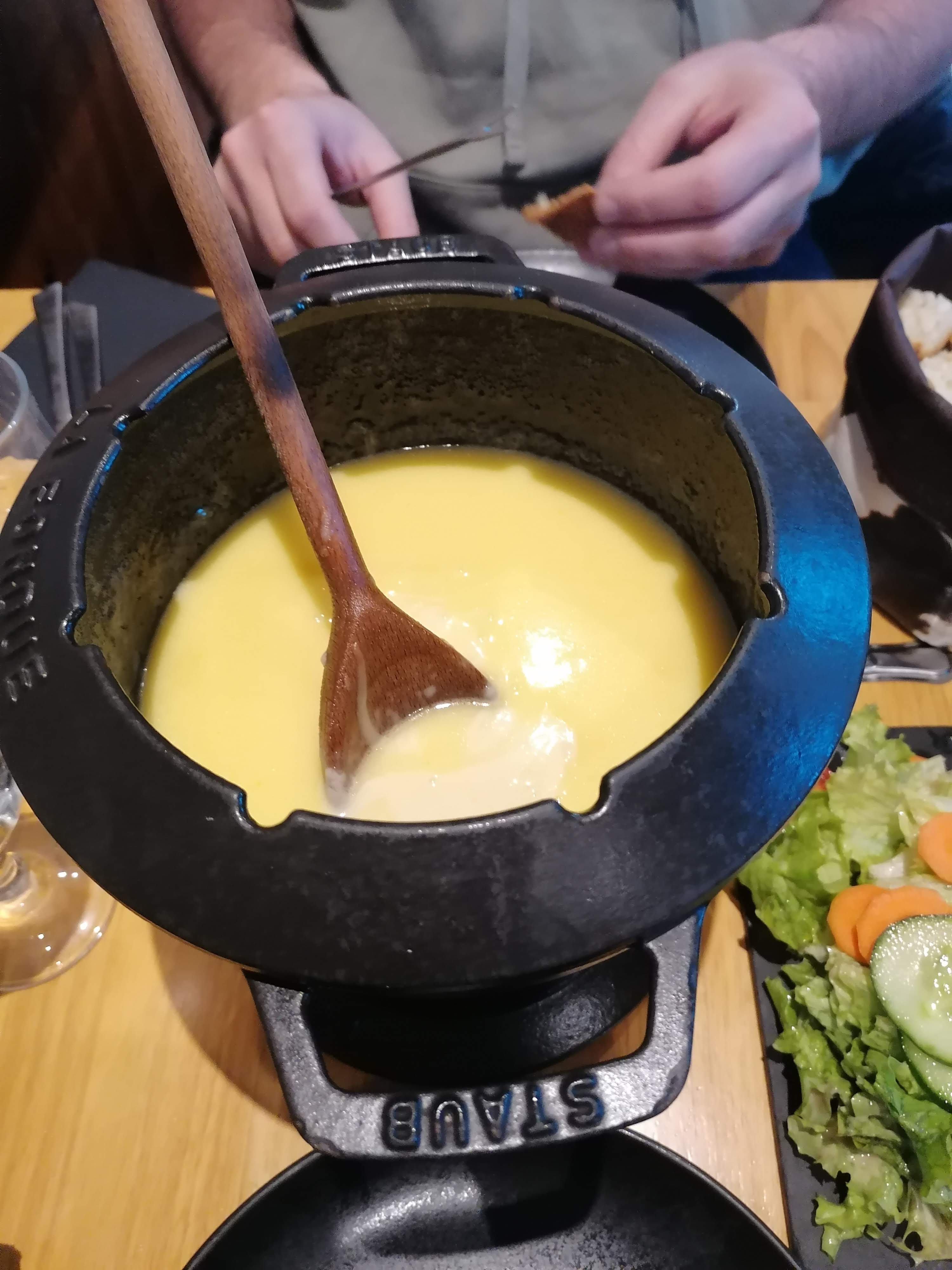 Nous avons mangé une fondue et un burger. Les deux étaient bon.