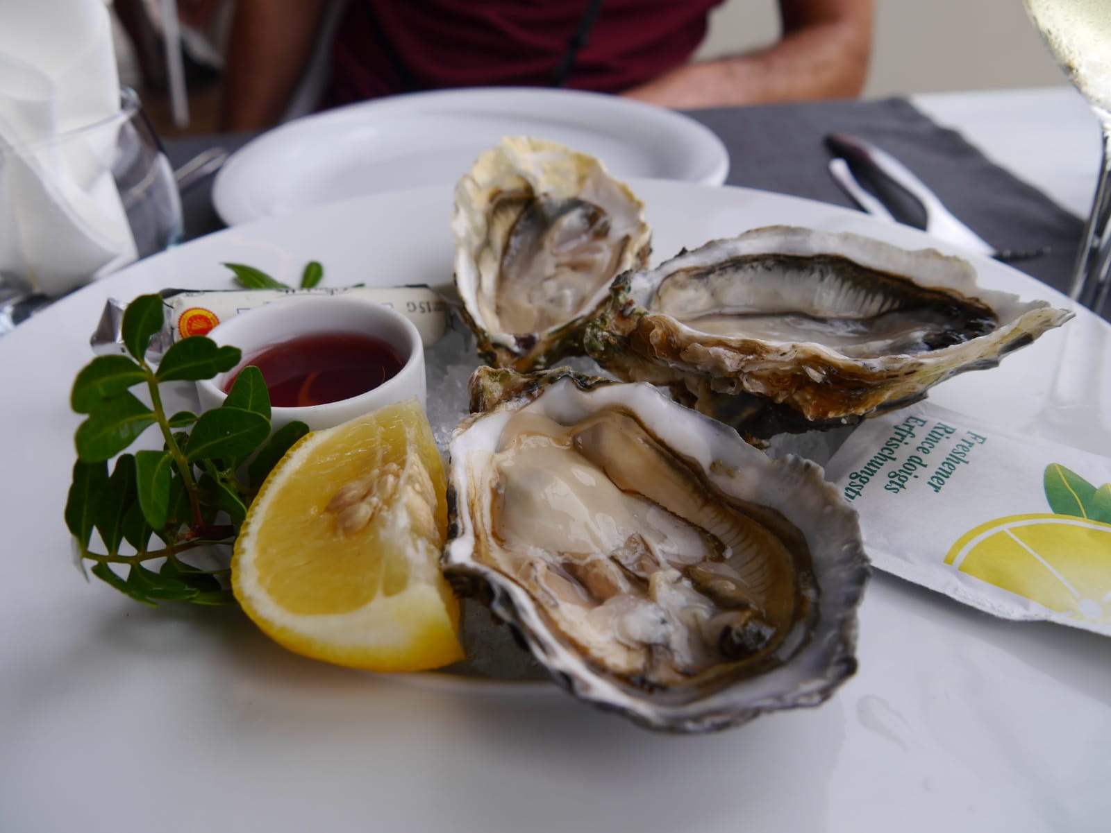 Cadre très agréable. Bon accueil et bon service. Cuisine délicieuse et pas que les coquillages. À recommander.