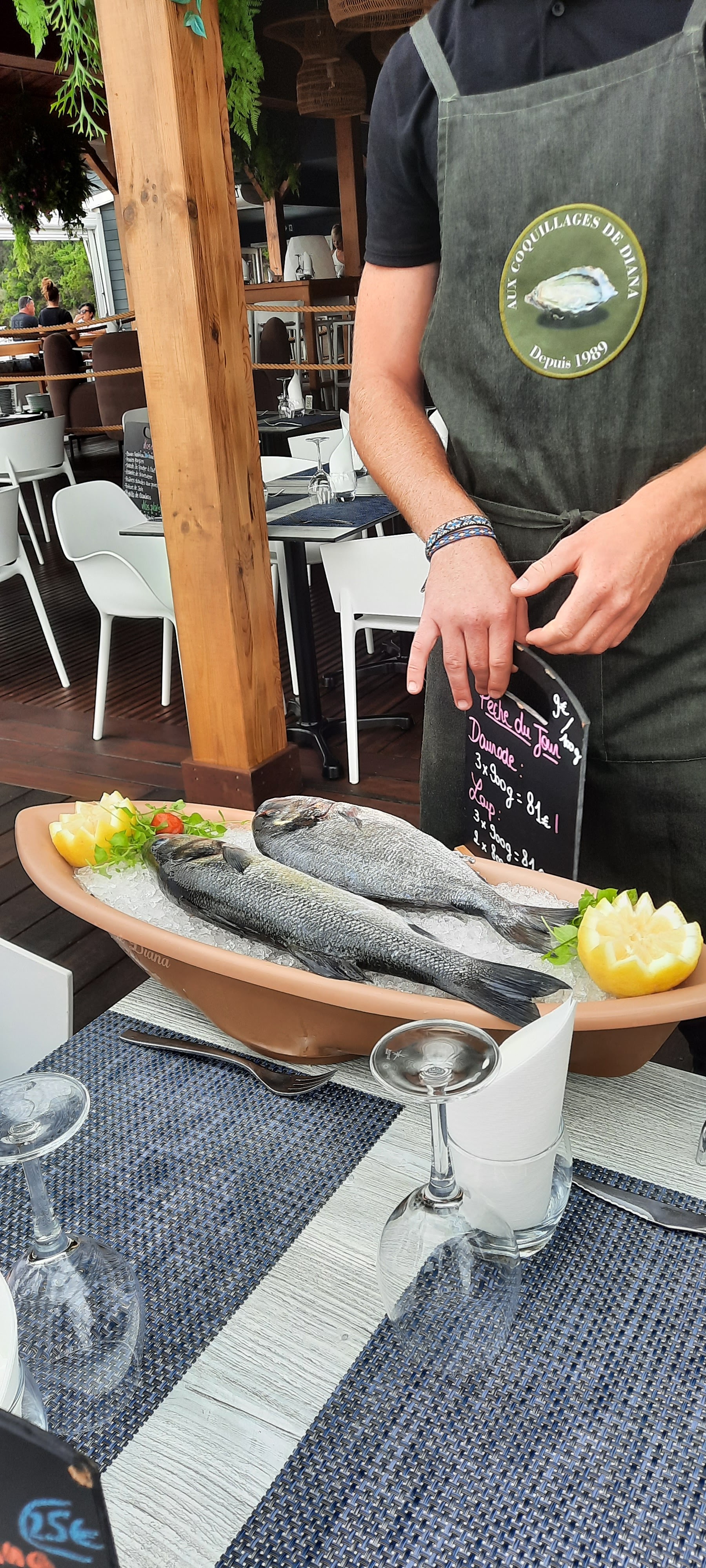 Quel plaisir que de s’approcher des étangs puis de découvrir le restaurant flottant poissons huîtres coquillages que du bonheur. Nous voici de retour pour le restaurant Aux Coquillages de Diana après l’épreuve Covid-19. On ne regrette rien bien au contraire toujours la même qualité de service attentionné des produits frais et bien sûr les huîtres et moules de l’étang exceptionnel croyez-moi À noter service en continue c’est un plus N’hésitez pas un instant